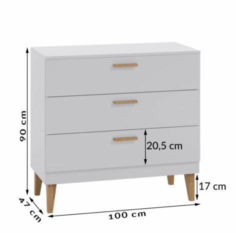 Otroška soba KELLY je na voljo v enostavni barvni kombinaciji bele ali sive barve in hrasta, kar ustvari prijeten skandinavski dizajn, ki se lepo poda v vsak dom in ga modernizira.