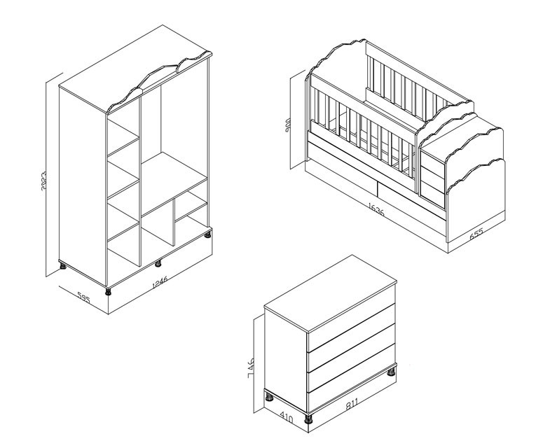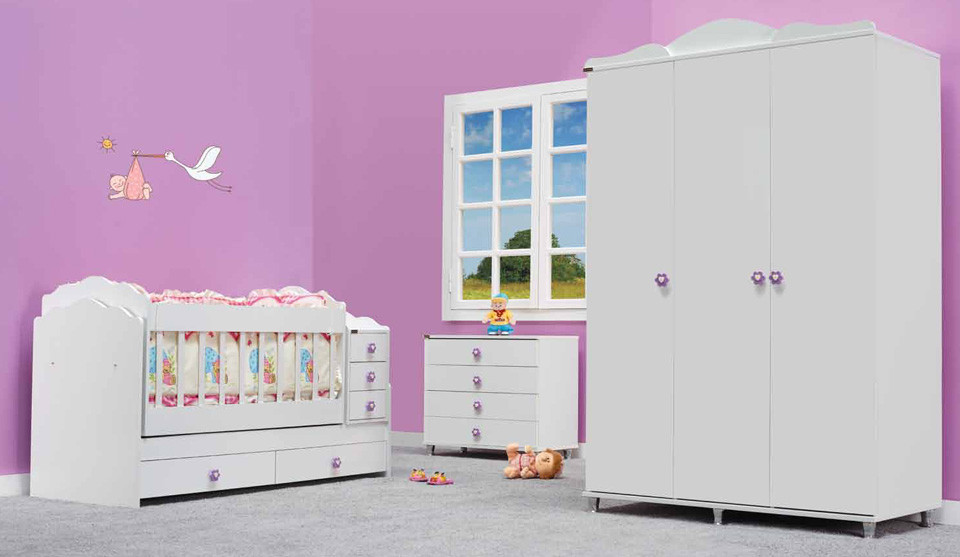 Otroško sobo Pamuk 2 sestavlja trojna omara, predalnik s štirimi predali in daljša posteljica s stranskim predalnikom in dvema predaloma spodaj. Otroška Sobo Pamuk 2 izdeluje proizvajalec pohištva Bensimo in predstavlja odlično razmerje med kakovostjo in ceno.