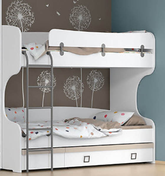 Otroški pograd Kiki je na voljo v beli in bukev barvi. Sestavljen je iz dveh postelj dimenzij 90x200 cm, ki sta ograjeni. Lestev lahko montirate na levo ali desno stran pograda. Vzmetnici nista vključeni. Izdelan je iz oplemenitene iverne plošče. Za večjo funkcionalnost lahko pogradu dodate še posteljni predalnik FK68, ki je na voljo v 4-ih barvnih kombinacijah.