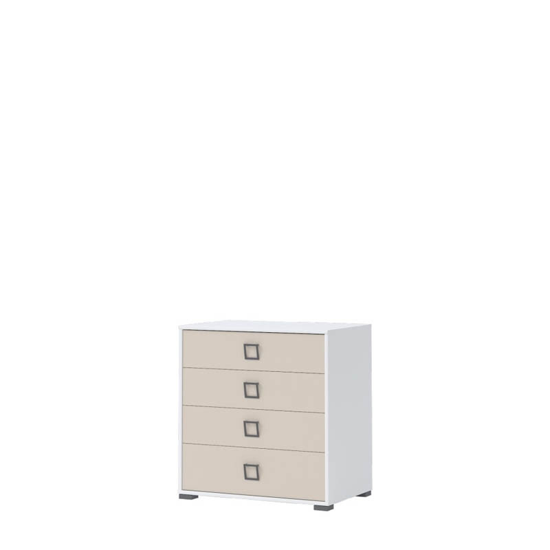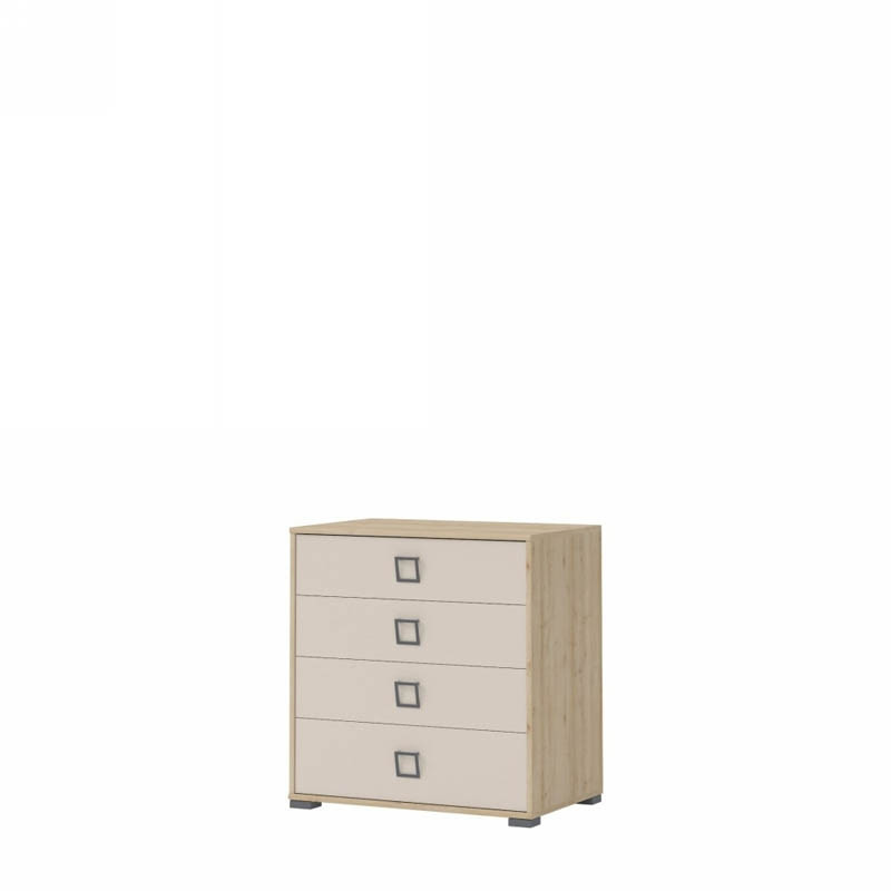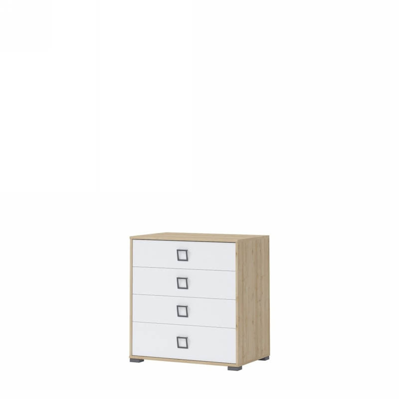 Otroški predalnik Kiki ima 4 prostorne predale, kamor lahko pospravite oblačila, modne dodatke, igrače, šolske potrebščine ali druge poljubne predmete. Je del kolekcije otroških spalnic Kiki, katere so na voljo v 4-ih različnih barvnih kombinacijah.