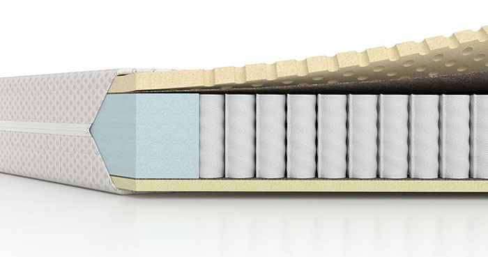 Na eni strani ima tršo 3 cm plast lateksa, ki izjemno točkovno podpira hrbtenico ter blaži pritisk na telo, na drugi strani pa nekoliko mehkejšo 2 cm plast poliuretanske pene, ki omehča pritisk ležišča na telo.