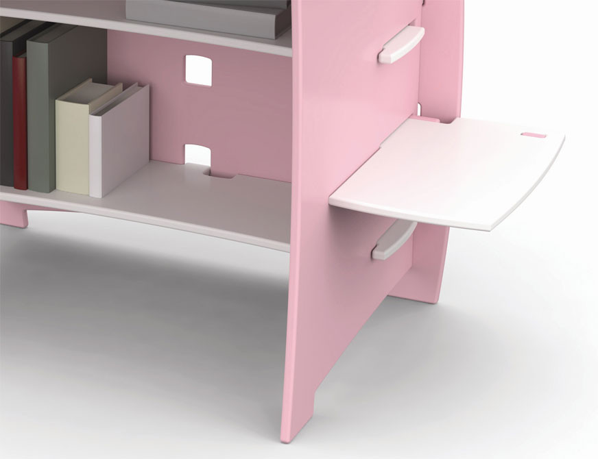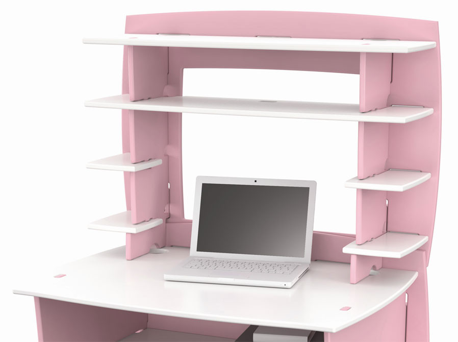 Pisalna miza FUR23 vam omogoča preprosto sestavo v treh korakih, brez orodja in vijakov. Pisalno mizo se s premikanjem elementov lahko prilagaja željam in potrebam vašega otroka in bo prijetno poživila otroško sobo. Pisalna miza je na voljo v treh različnih barvah: roza, modra in zelena. Poleg računalniške mize 1,2,3 je možno naročiti tudi komplementarni poličnik FUR23.