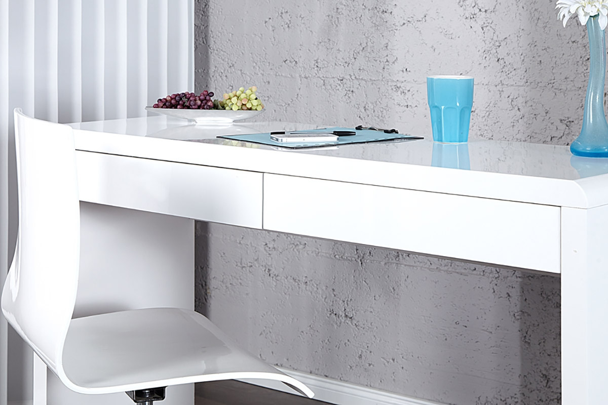 PISALNA MIZA SENSATIO je elegantna miza v beli barvi, ki bo poskrbela, da bo vaš prostor videti svetlejši in bolj prefinjen. Izdelana je iz kvalitetnega MDF materiala, ki bo poskrbel za dolgoletno nemoteno uporabo. Miza ima dva predala, kamor boste lahko pospravili papirje, zvezke, pisala, in ostalo pisarniško galanterijo, in tako ohranili čisto in pospravljeno delovno površino. Predala sta brez kljuk, kar jima da še bolj minimalistični in elegantni videz. Predala se preprosto odpirata. Stranice mize so debeline 40cm, zgornja plošča mize je na skrajnem levem in desnem robu rahlo zaobljena.