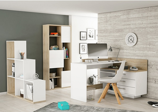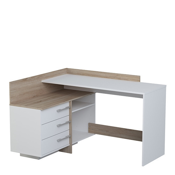 Pisalna mita THALES nudi vse kar potrebujete urejeno in prostorno delovno okolje. Zelo lepa kombinacija bele barve in imitacije hrasta, ter sodoben in moderen dizajn poskrbijo za estetsko ugoden videz vaše mize in prostora v katerem je. Tri prostorni predali, odprta omara z eno polico ter velika polica nad spodnjim elementom poskrbijo da vam nikoli ne bo zmanjkalo prostora za odlaganje. Miza ima tudi povišane stranske robove, ki preprečijo padanje stvari iz mize.