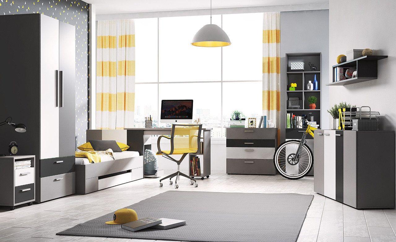 Elegantna kombinacija srebrne, sive in črne barve nudi pohištvu nekoliko bolj prefinjen videz, zato je kolekcija Tomi primerna tako za otroško kot tudi za mladinsko sobo. Enostaven dizajn in nekoliko temnejše barve naredijo sobo primerno za vse starosti!