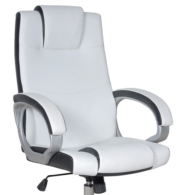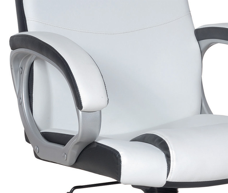 Pisarniški stol PS002 iz EKO usnja bele in črne barve je primeren za vse tiste, ki hočejo službeno ali domačo pisarno opremiti s kvalitetnim pisarniškim pohištvom, ki omogoča udobno delo in sedenje.