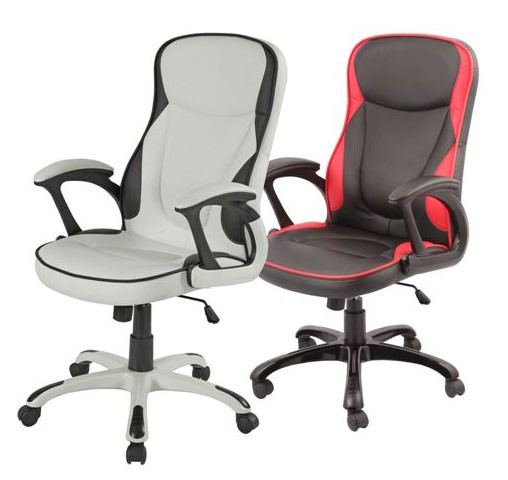 Pisarniški stol TOMAS (dve barvi) bo poskrbel za udobje doma ali v pisarni. Oblazinjen je v EKO usnje in je na voljo v dveh barvah: belo-črni ali črno-rdeči. Za večje udobje ima stol tudi naslone za roke. Na voljo je v dveh barvnih kombinacijah.