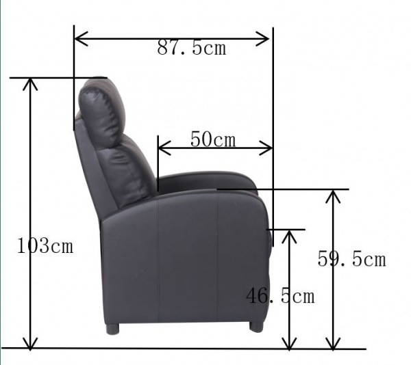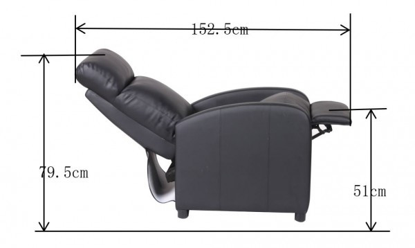 Počivalnik LATINO je udoben počivalnik v črni barvi. Narejen je iz umetnega usnja. Počivalnik ima relax funkcijo, ki jo sprožite s pritiskom na stransko ročko. Sedišče je velikosti 47x50 cm. Višina sedišča je 46,5 cm. Višina rokonaslonov je pa 59,5 cm.