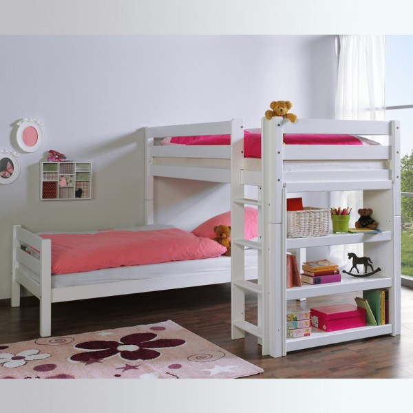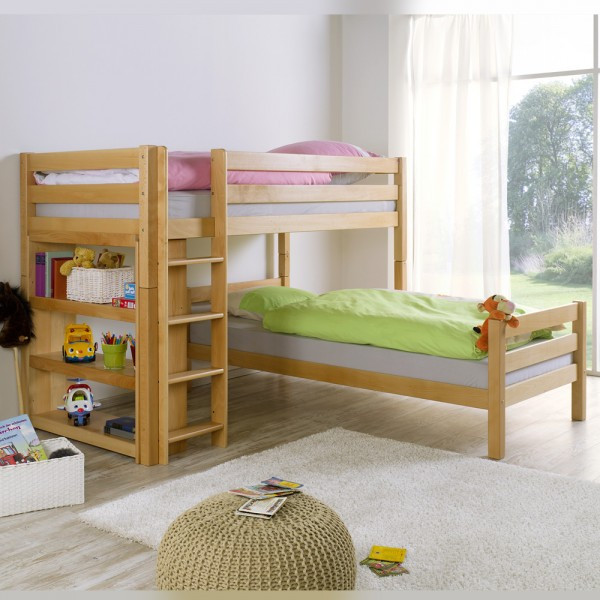 Pograd DENI L je na voljo v beli in naravni - bukev barvi. Pograd DENI L in je izredno praktična rešitev za otroško sobo, saj ima vključen tudi poličnik s tremi policami. Lestev in posteljni pod sta vključena poleg.