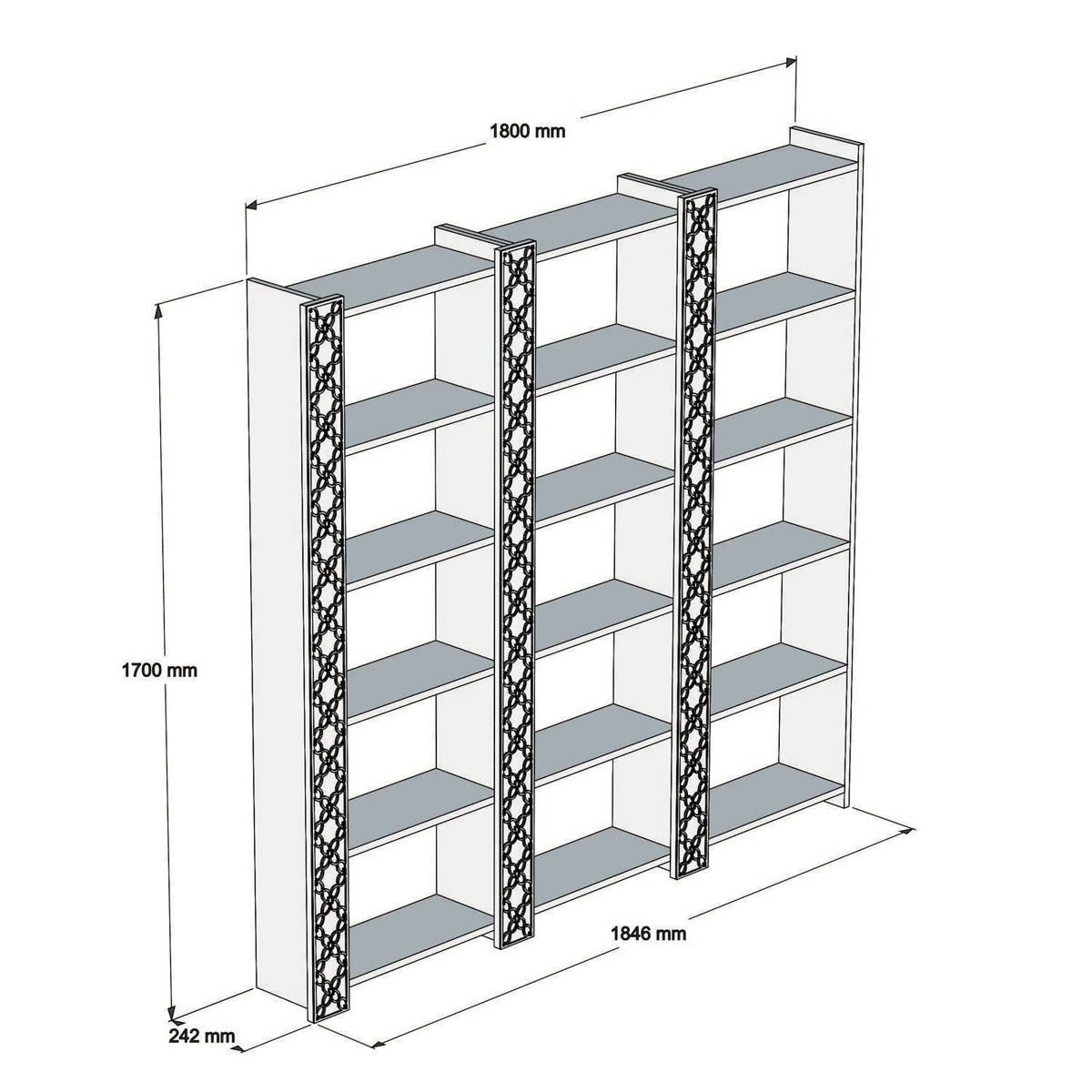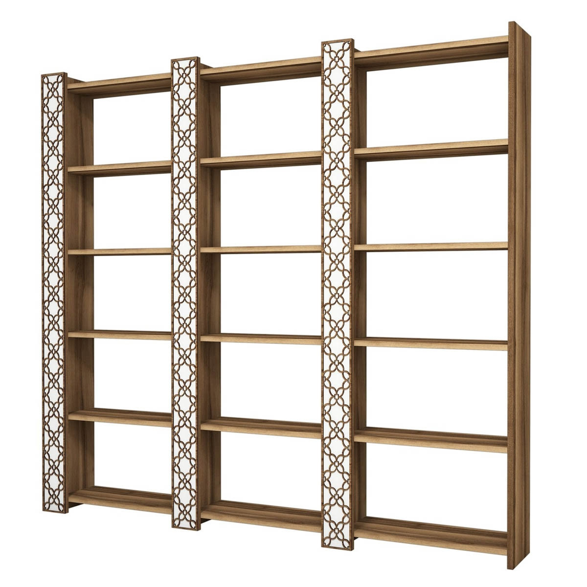 Širok poličnik CINTYA je odličen dodatek za vašo dnevno sobo ali spalnico. S svojimi enakomerno razporejenimi policami lahko vanj shranite knjige, okrasne predmete in druge pripomočke, ki jih želite imeti na ogled. Poleg praktičnosti pa poličnik navdušuje tudi z dekorativnimi poslikavami, ki dajejo vašemu prostoru umetniški pridih. Na voljo je v topli barvi oreha, ki se lepo prilega različnim vrstam notranje opreme.