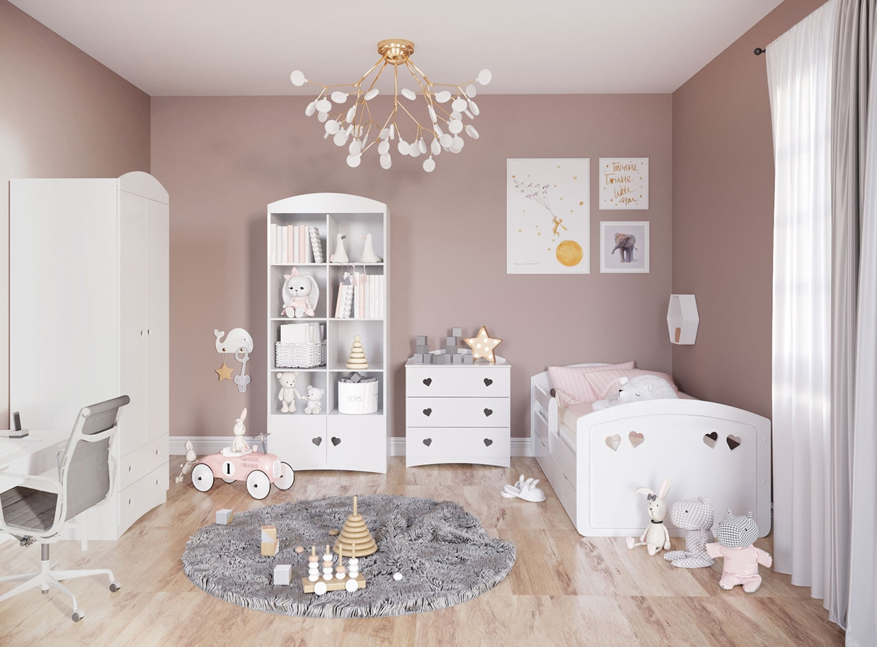 Kolekcija JESSY vključuje posteljo, priročen 3-delni predalnik, garderobno omaro in poličnik, ki vam nudijo obilo prostora za shranjevanje in organizacijo vseh otrokovih oblačil, knjig, igrač in šolskih potrebščin, zato bo otroška soba vedno lepo pospravljena in dobro organizirana! Hkrati vam elementi ne zavzamejo veliko prostora zato je kolekcija JESSY primerna tudi za najmanjše otroške sobe.