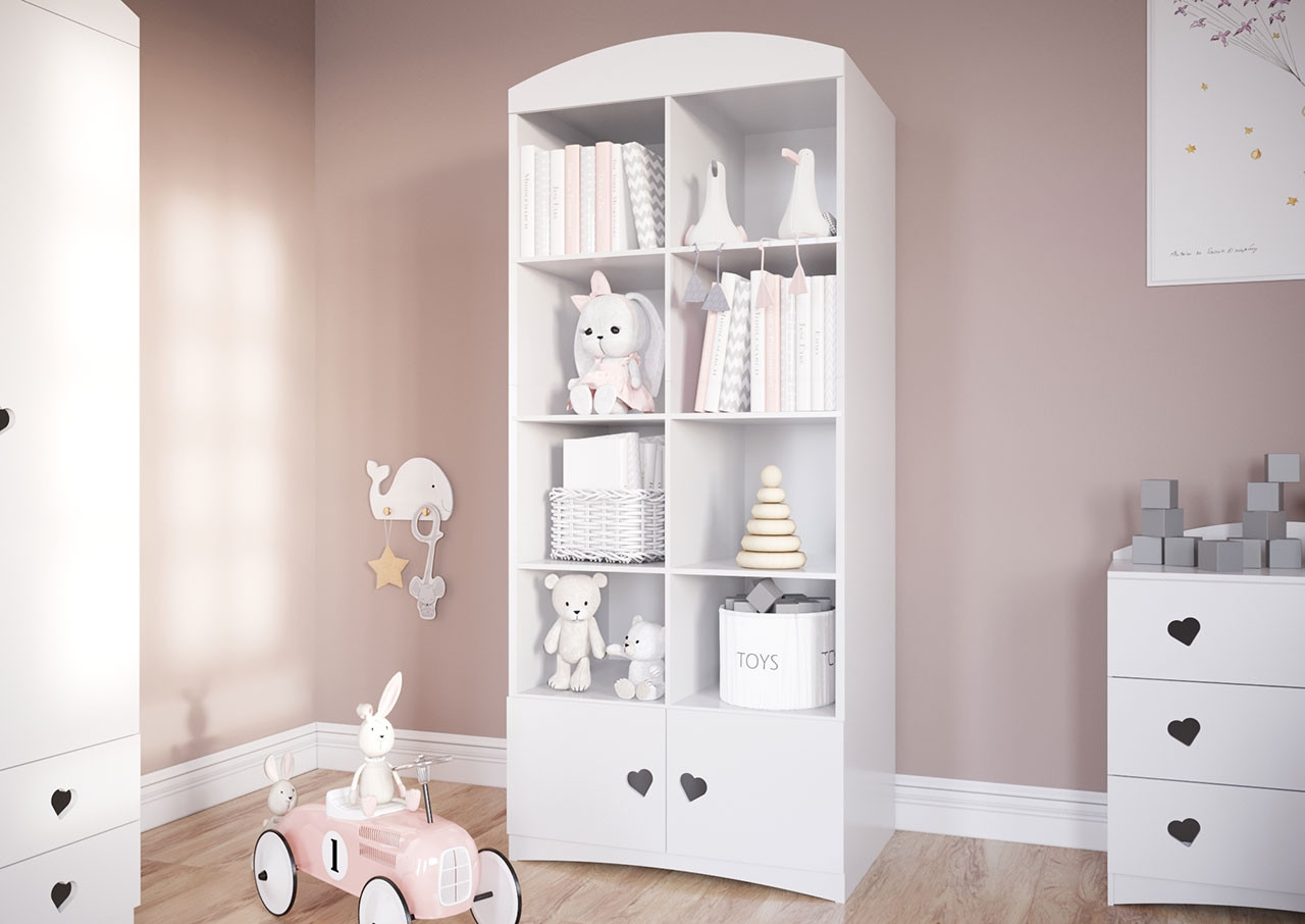 Potrebujete dodatni prostor za odlaganje knjig, slik in raznih dekoracij? Potem je poličnik JESSY odlična izbira za vas, saj vam nudi kar 8 odprtih polic na katere lahko razstavite vse svoje najljubše predmete, spodaj je pa tudi manjša zaprta omarica z vratci. Poličnik se ponaša z izjemno minimalističnim dizajnom zaradi katerega je primeren za otroško in mladinsko sobo, dnevno sobo ali domačo pisarno.