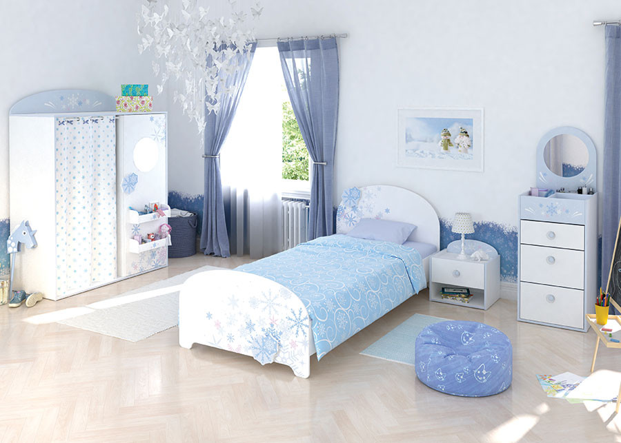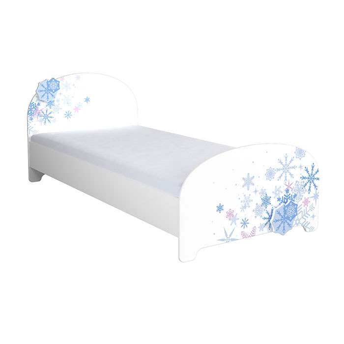 Postelja FLOCONS brez letvenega dna je narejena iz 15 mm iverne plošče (18 mm na vsaki strani). Postelja je bele barve in ima en set led diod v vzglavju. Postelja ima zvezdasto oblikovan profil.