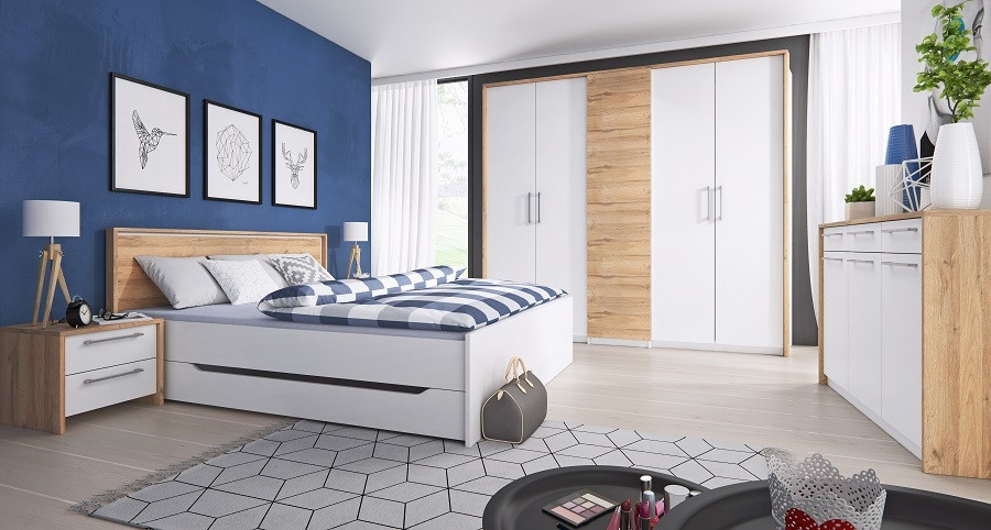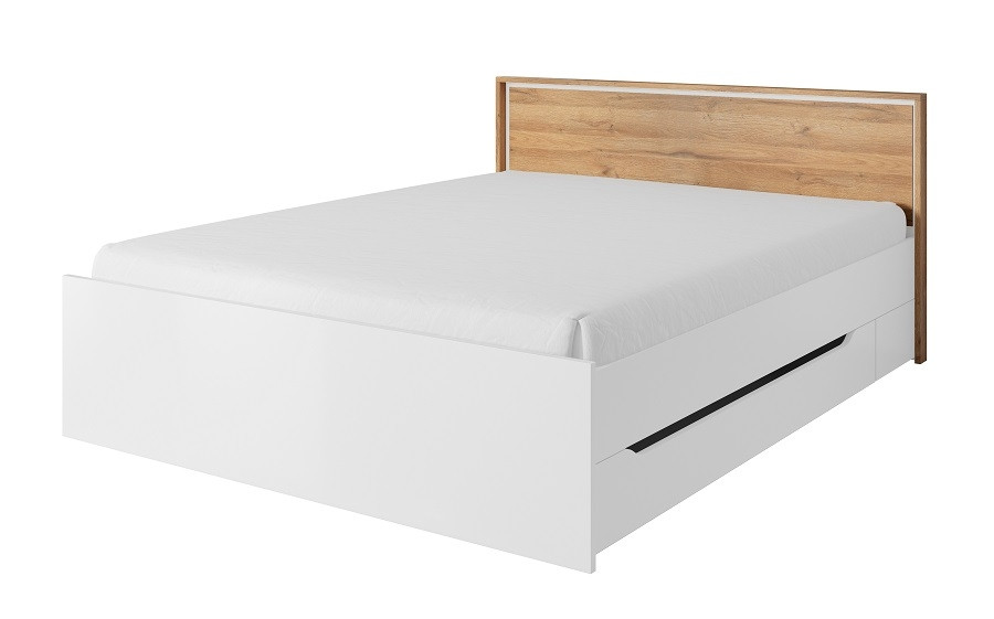 Postelja FOR (160 ali 180cm) je na voljo v kombinaciji bele in hrast barve. Postelja se bo s svojim dizajnom dobro podala v skoraj vsako spalnico. Naročite jo lahko v dveh dimenzijah.
