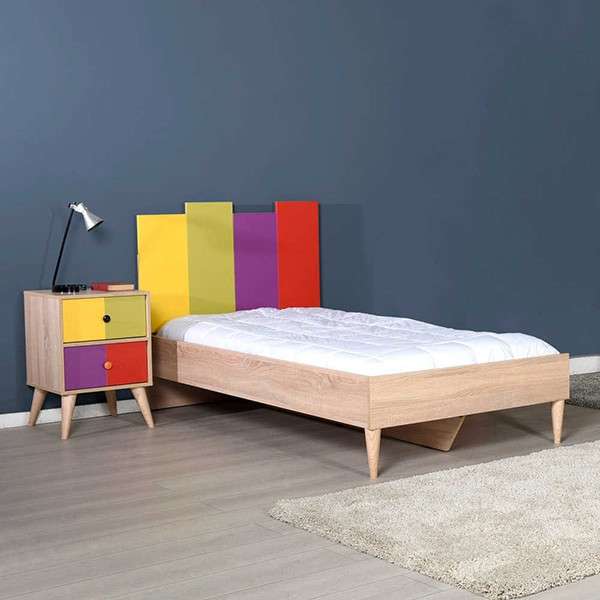 POSTELJA MAVRICA je čudovita postelja z zelo zanimivim vzglavjem, ki bo v vašo spalnico vneslo novo energijo. Vzglavje je na voljo v kombinaciji barv, ki spominjajo na mavrico in popestrijo prostor, zato bodo vaši otroci z veseljem preživljali prosti čas v svoji sobi. Narejena je iz visokokakovostnih ivernih plošč in melamina, za dodatno stabilnost pa poskrbijo jekleni ojačevalci na vogalih. Oglejte si še druge izdelke iz linije MAVRICA!