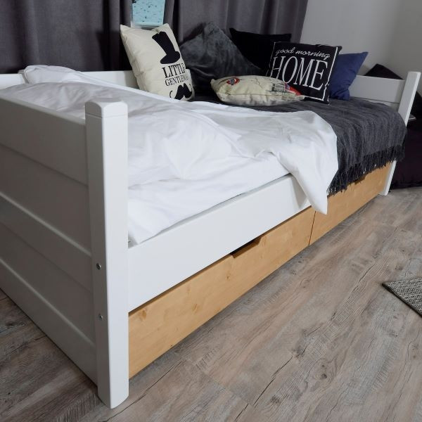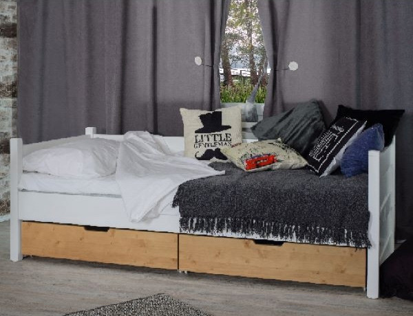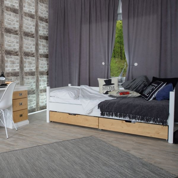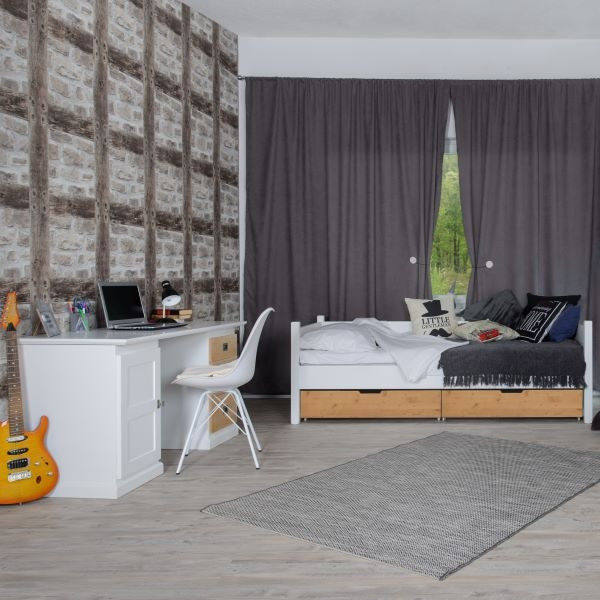 Klasična postelja METI se ponaša s kvalitetno izdelavo in brezčasnim videzom. Izdelana je iz kombinacije masivne bukve in kvalitetnih MDF plošč, podposteljna predala pa imata mehko zapiranje, ki omogoča lažjo vsakodnevno uporabo in prepreči nastajanje poškodb. Na voljo je v moderni kombinaciji bele in natur barve.