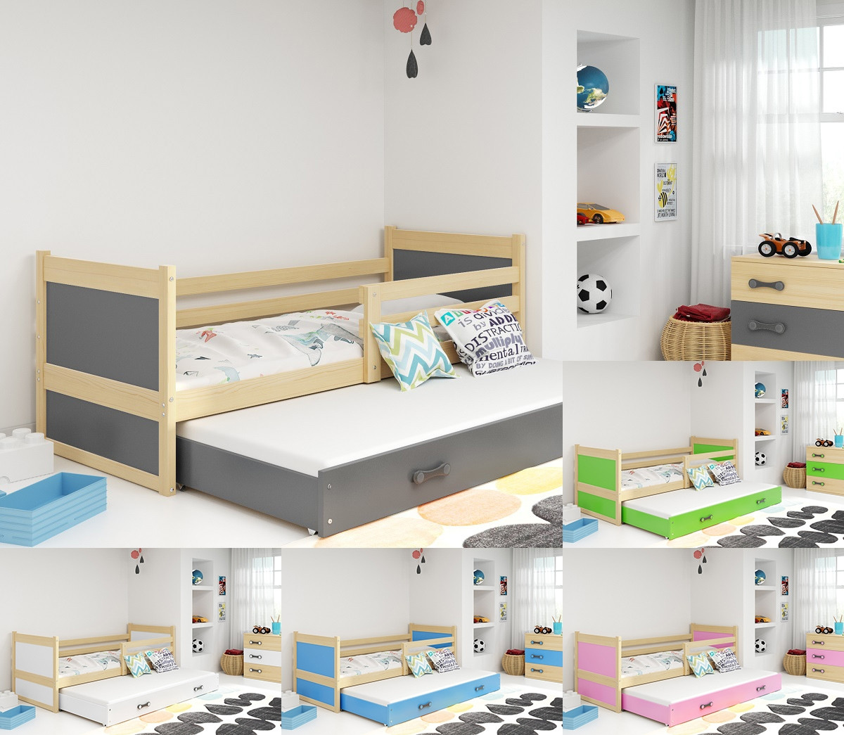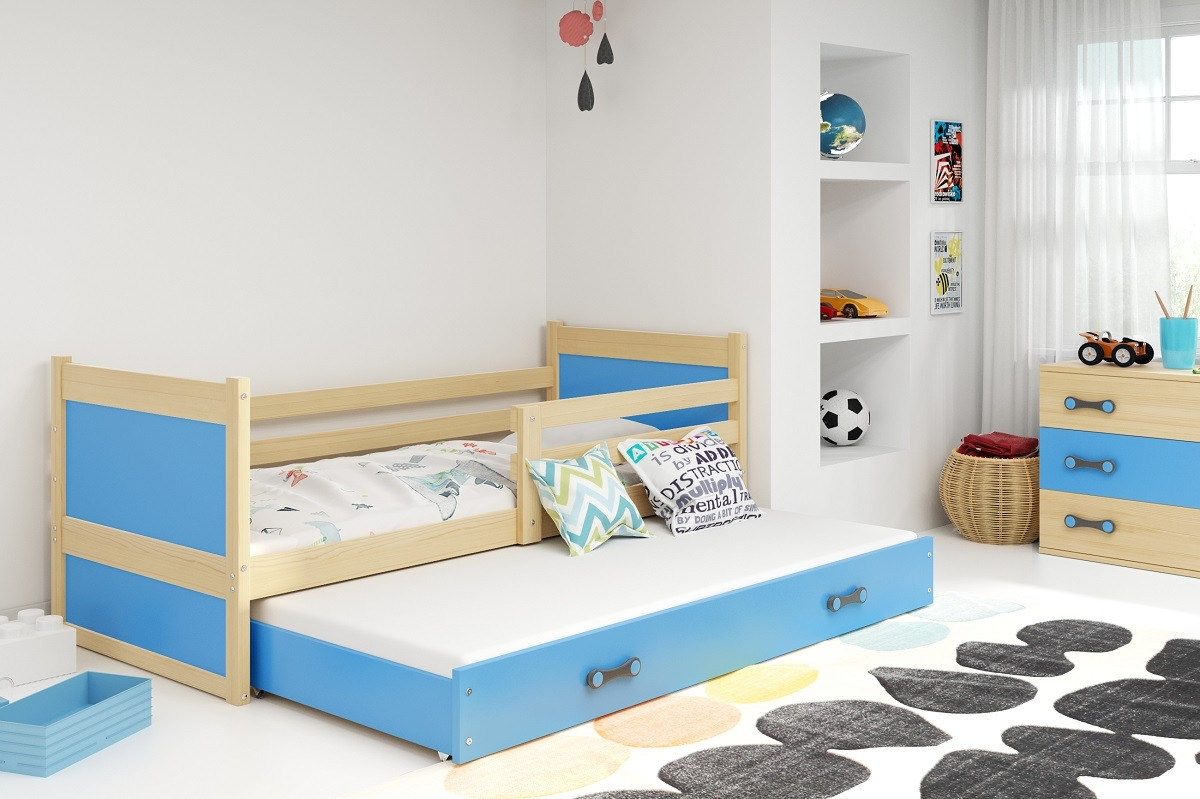 Otroška postelja RICO z možnostjo dodatnega ležišča je več kot samo udobna in varna za spanje vašega otroka, saj edinstven dizajn postelje oživi celotno otroško sobico, kjer bo vaš otrok z veseljem prebival v času igre, učenja in izpolnitvi malih otroških sanj. Poleg postelje dobite tudi posteljni pod in ležišče!