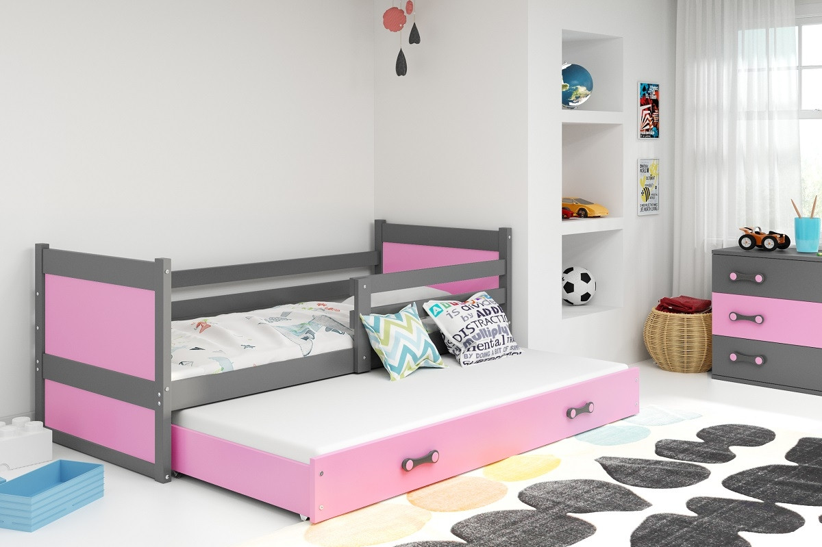 Otroška postelja RICO z možnostjo dodatnega ležišča zgotavlja izjemno kakovost. Postelja RICO je oblikovana predvsem zato, da lahko svojemu otroku ustvarite varno in ljubko sobico, za kar vam ne bo potrebno odšteti celega bogastva. Dodatno ležišče v predalu je odlična rešitev za vse, ki imajo prostorsko stisko in bi potrebovali dodatno ležišče za otroka ali gosta. Uporaba dodatnega ležišča je zelo enostavna, saj je predal na koleščkih in se enostavno odpre in pospravi. V kakovost same postelje pa vas bo prepričala uporaba naravnega lesa ter visoko kakovostnih plošč MDF.