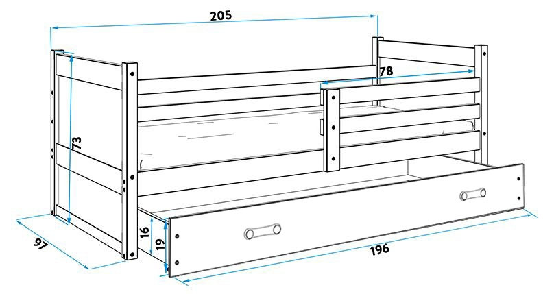 Otroška postelja RICO zgotavlja izjemno kakovost. Postelja RICO je oblikovana predvsem zato, da lahko svojemu otroku ustvarite varno in ljubko sobico, za kar vam ne bo potrebno odšteti celega bogastva. V kakovost same postelje vas bo prepričala uporaba naravnega lesa ter visoko kakovostnih plošč MDF. Konstrukcija vseh otroških postelj pa je povezana z zelo močnimi in trdnimi vijaki.