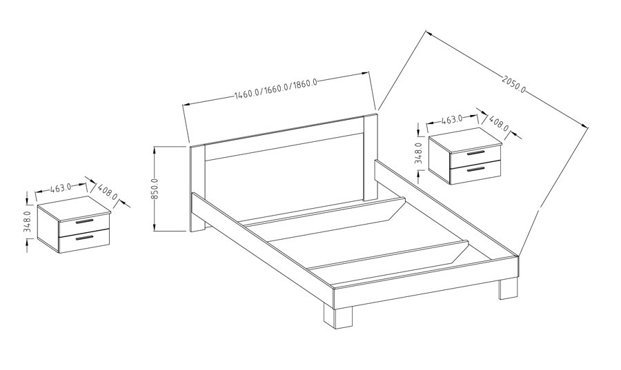 V kompletu prejmete dve nočni omarici! Posteljni pod in ležišče nista vključena v ceno.