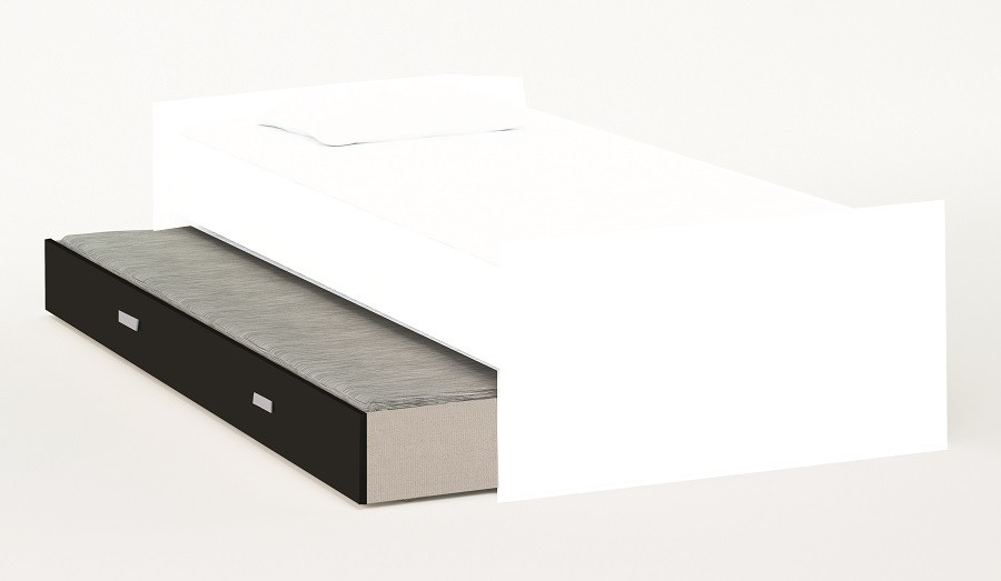 Predal za posteljo HEIDI je v črni barvi. Predal služi kot dodatno ležišče za vzmetnico dimenzije 90x200. V predalu je letveno dno že vključeno, vendar brez vzmetnice. Predal je na šestih koleščkih.