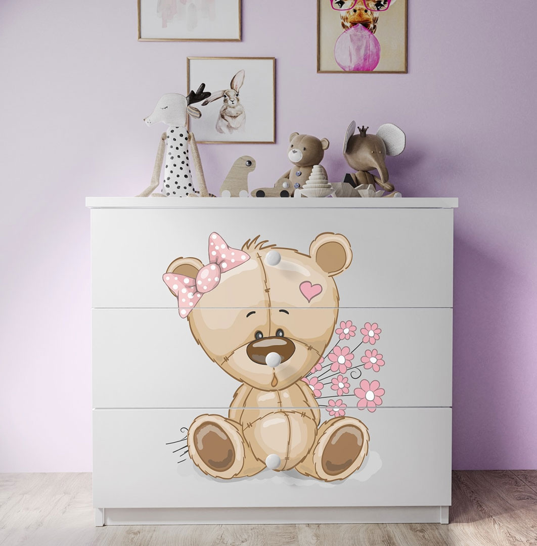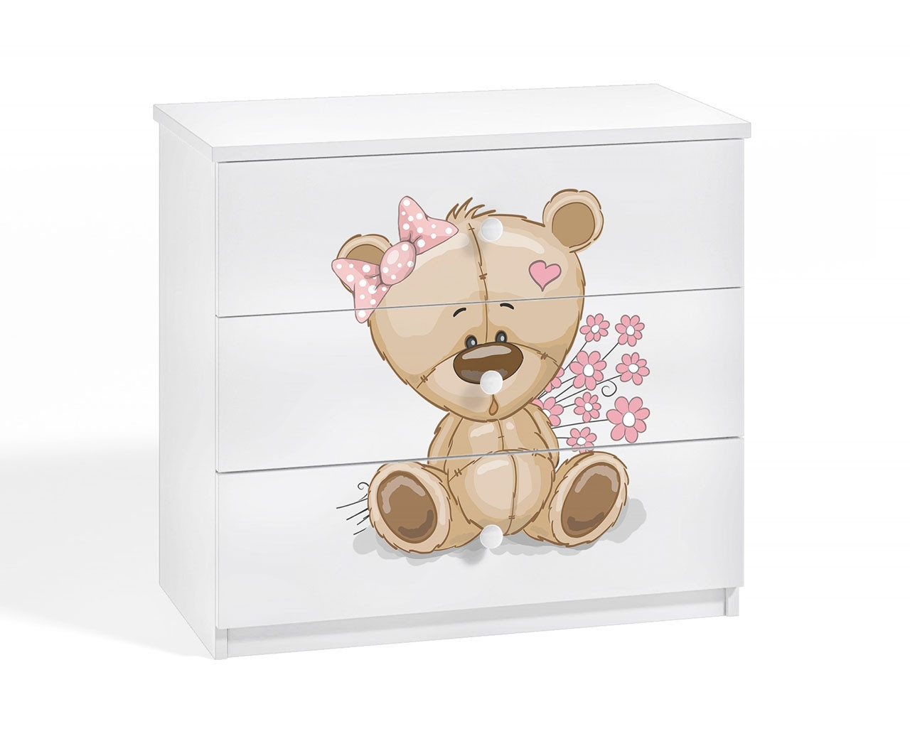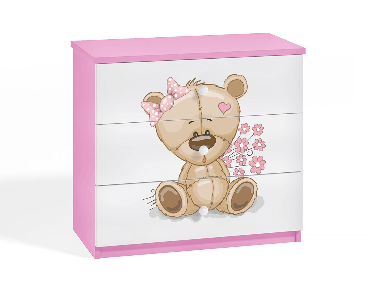 Popestrite otroško sobico s prikupnim predalnikom DREAMY z motivom prijazne medvedke! Predalnik ima 3 prostorne predale v katere lahko otrok pospravi svoje nogavičke, modne dodatke in ostala oblačila. Predalnik je del kolekcije DREAMY, ki je na voljo v številnih različnih barvah in z različnimi motivi, ki so primerni tako za fantke kot za punčke!