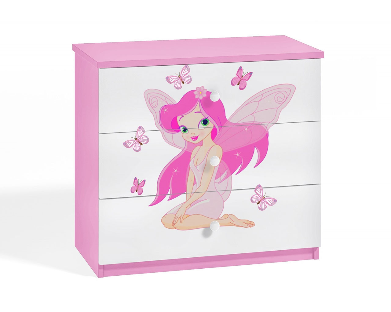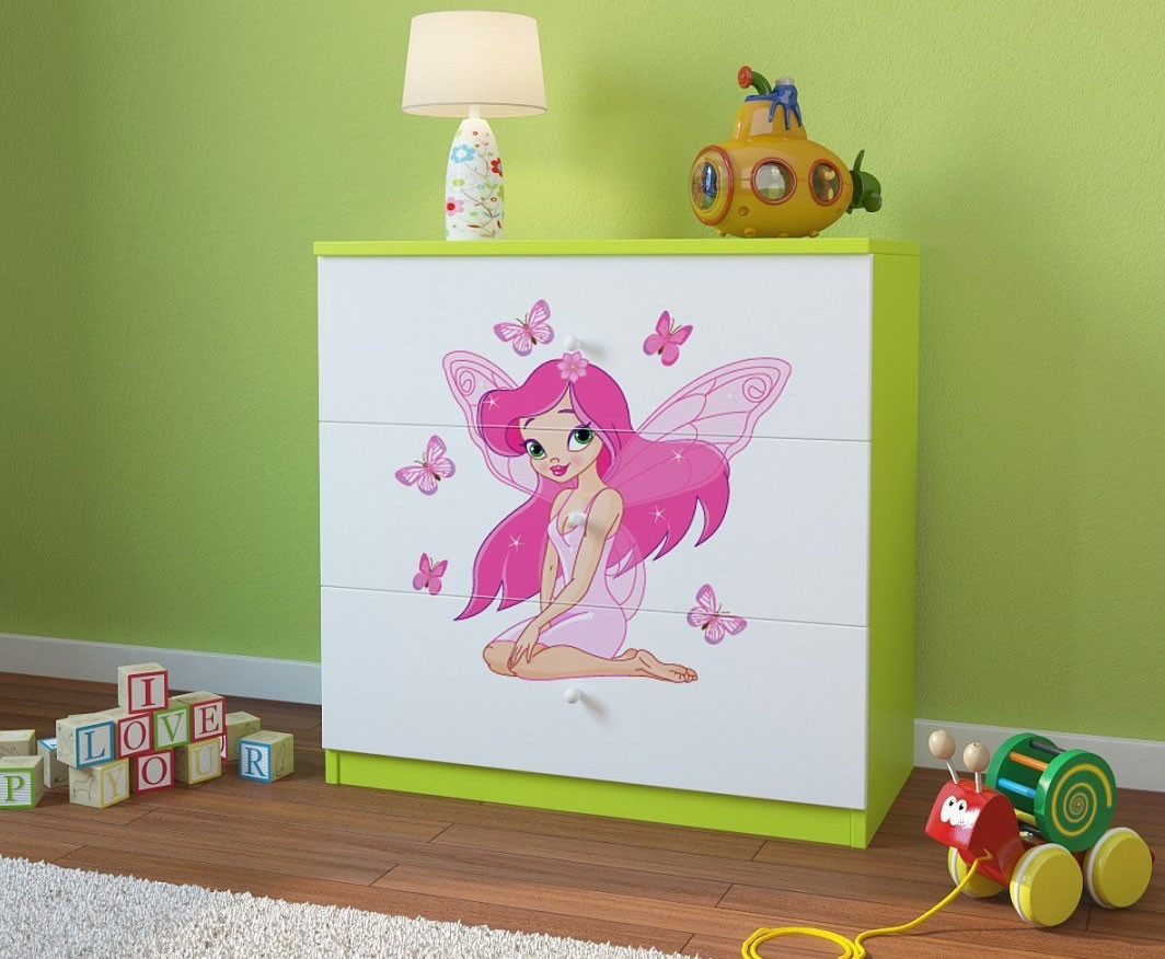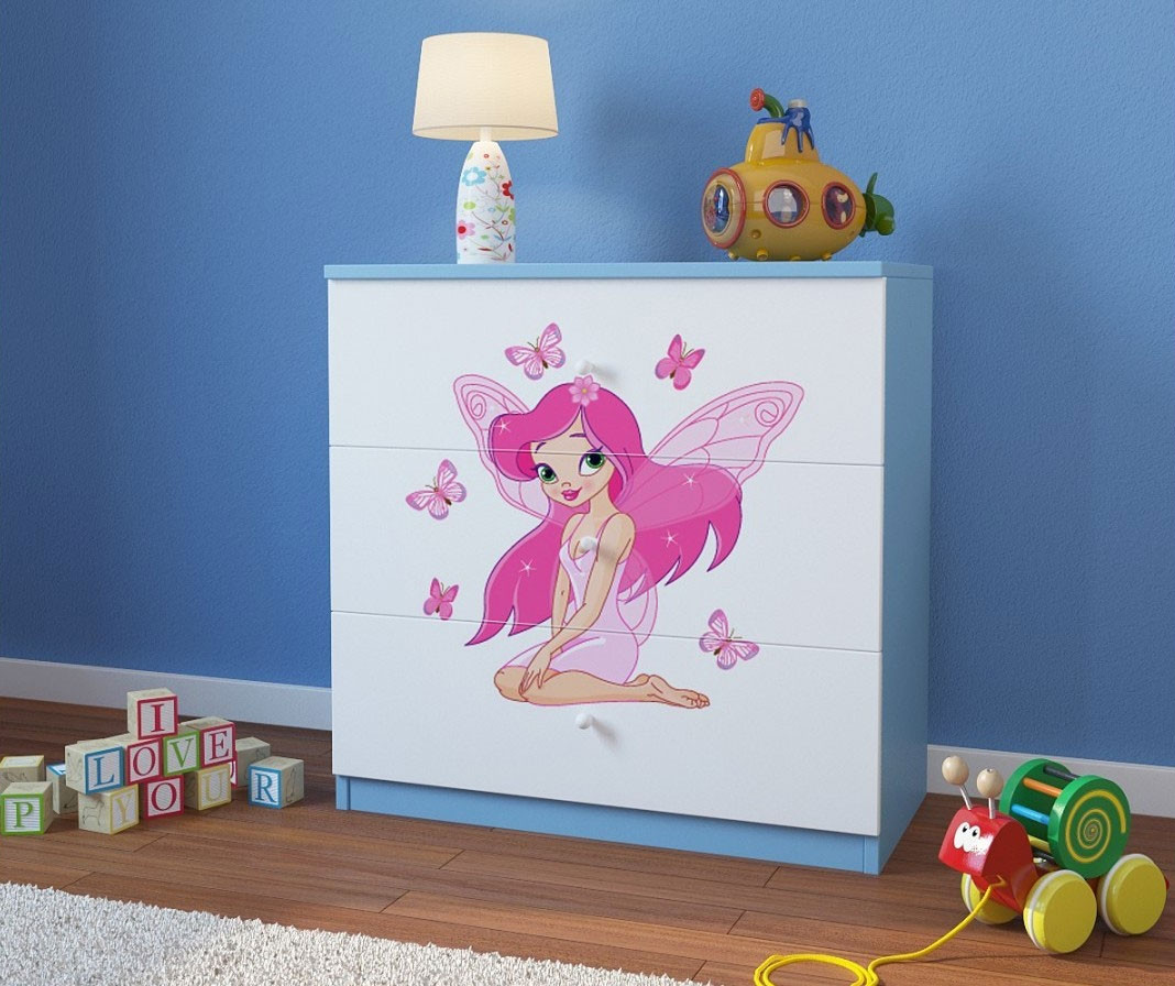 Predalnik Dreamy z motivom vile nudi otroku dragoceni dodatni prostor za shranjevanje in popestri otroško sobico! Ima tri predale v katere lahko pospravite oblačila in igrače. Predalnik je na voljo v štirih različnih barvah in s prikupnim motivom dobre vile, ki bo v veselje vsakemu otroku. Oglejte si še ostale artikle kolekcije DREAMY za stilsko dovršeno in unikatno otroško sobico!