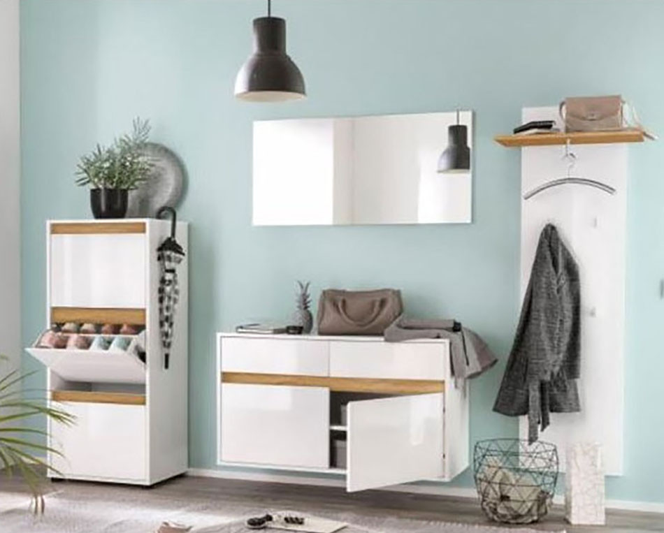 Predsoba LUNNA je predsoba modernega in preprostega videza, ki se bo odlično podala v vaš dom. Sestavljena je iz štirih elementov: komode, ogledala, omarice za čevlje in obešalnika, ki vam bodo omogočili shrambo velikih in manjših predmetov, hkrati pa bodo poskrbeli za dober izgled prostora.