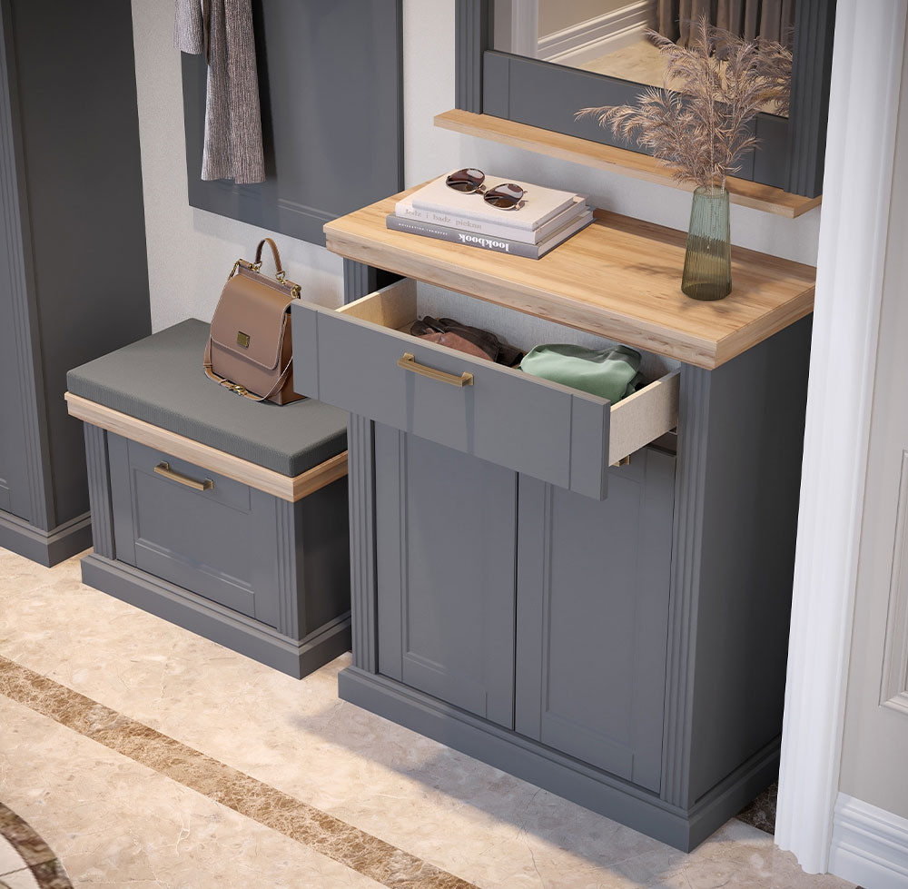 Privoščite svojemu domu elegantno, funkcionalno in kvalitetno predsobo MILLA TARA, ki vam nudi obilo prostora za shranjevanje čevljev, modnih dodatkov in vrhnjih oblačil. Vaša predsoba bo vedno izgledala odlično, saj bo lepo pospravljena in organizirana.