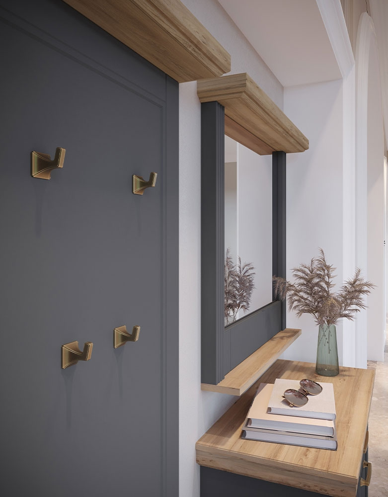 Kolekcija TARA je zanimivega videza, saj kombinira nekoliko bolj rustikalni dizajn in ročke z moderno barvo grafita in oreha. Kolekcija TARA se zato odlično poda v vsak dom!