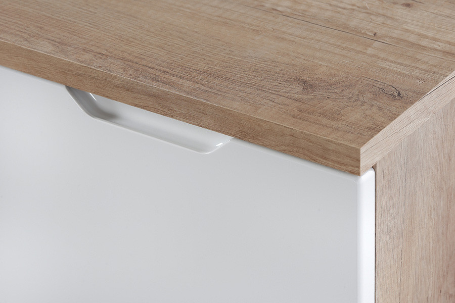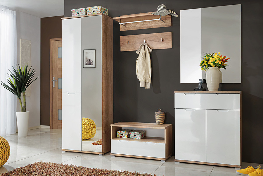 Predsoba ROY je sestavljena iz ogledala, komode, obešalne stene, klopi in garderobne omare. V kombinaciji barv bela visoki sijaj in hrast. Oglejte si še ostale elemente iz tega programa.