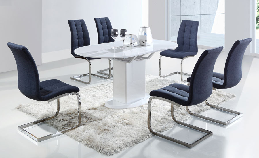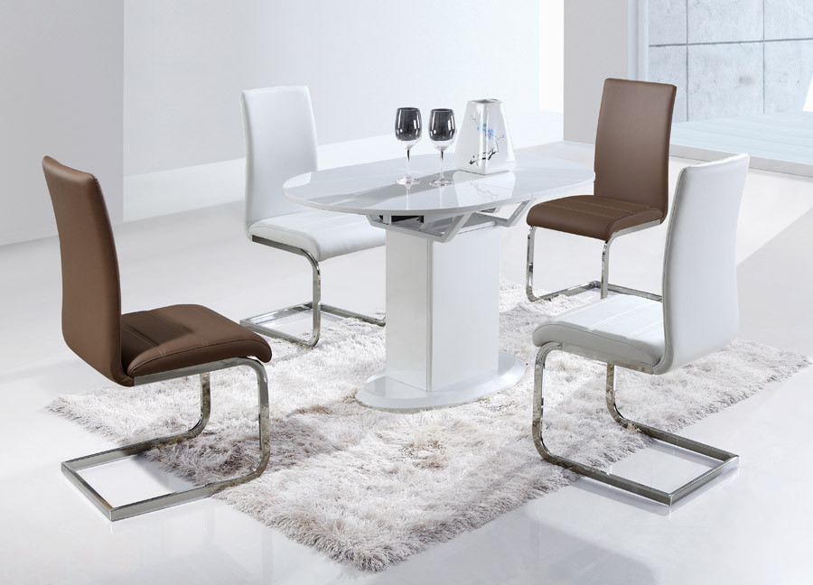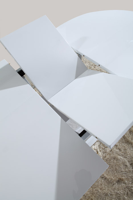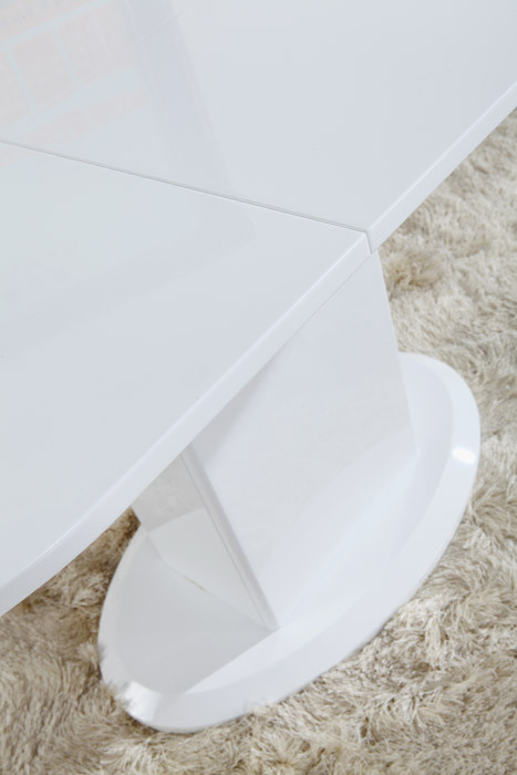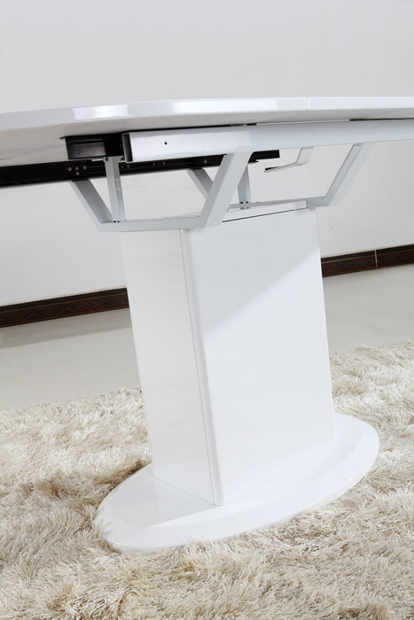 Raztegljiva jedilna miza Kalina je na voljo v beli barvi, visoki sijaj. Miza je narejena iz kvalitetnega MDF materiala, odlikuje pa jo moderen dizajn s katerim se bo odlično vklopila v vsako jedilnico.