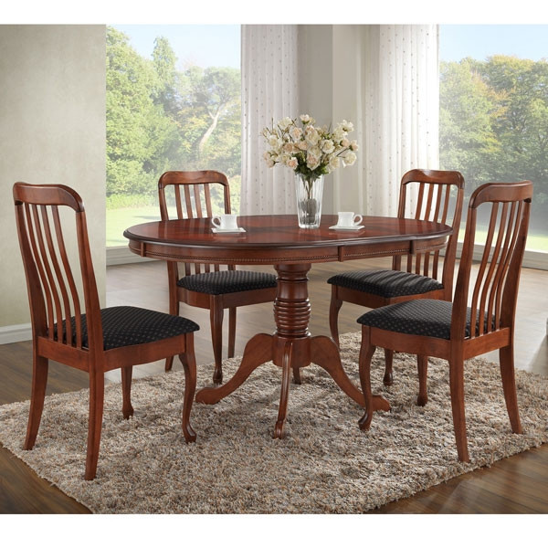 Klasična raztegljiva jedilna miza rustikalnega videza. Jedilna miza je v barvi mahagonija. Narejena je iz masivnega lesa. Plošča mize je debeline 18 mm. Mizo je mogoče raztegniti s sredinskim vložkom.