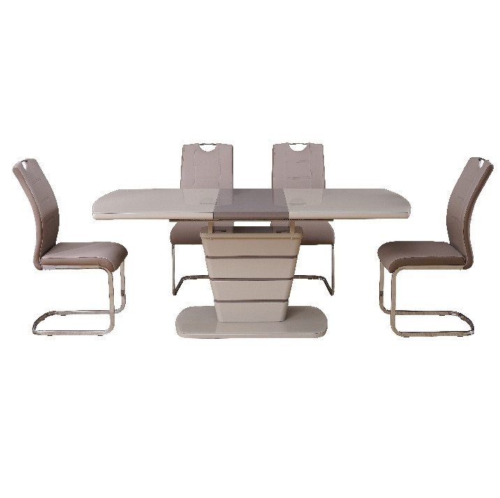 Raztegljiva jedilna miza ROXY je na voljo v moderni kombinaciji kapučino in rjave barve, ki se odlično poda v vsak dom in se enostavno kombinira z ostalim pohištvom! Na voljo je v treh različnih dimenzijah, ko je raztegnjena vam nudi dodatnih 40 cm dolžine.