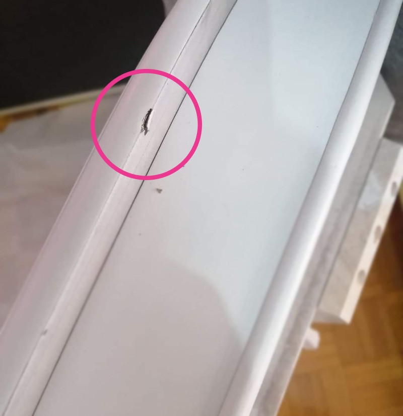 Miza je popolnoma nova, nemontirana. Zaradi napake v transportu pa ima manjše poškodbe. Slike v galeriji.