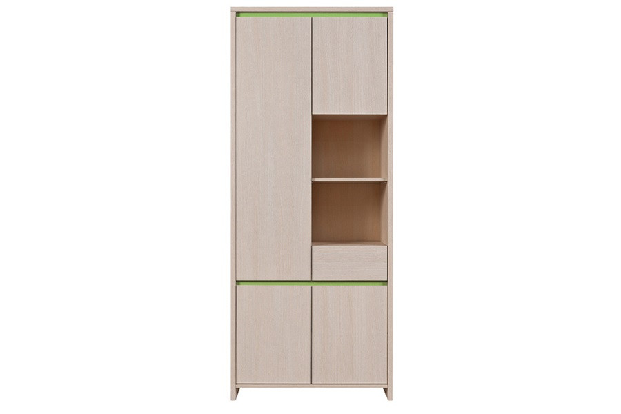 Regal NUMLOCK 80 je na voljo v dveh barvnih kombinacijah. Sonoma hrast je v kombinaciji z zeleno in oranžno barvo. Regal je narejen iz oplemenitene iverne plošče.