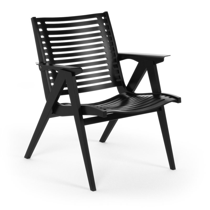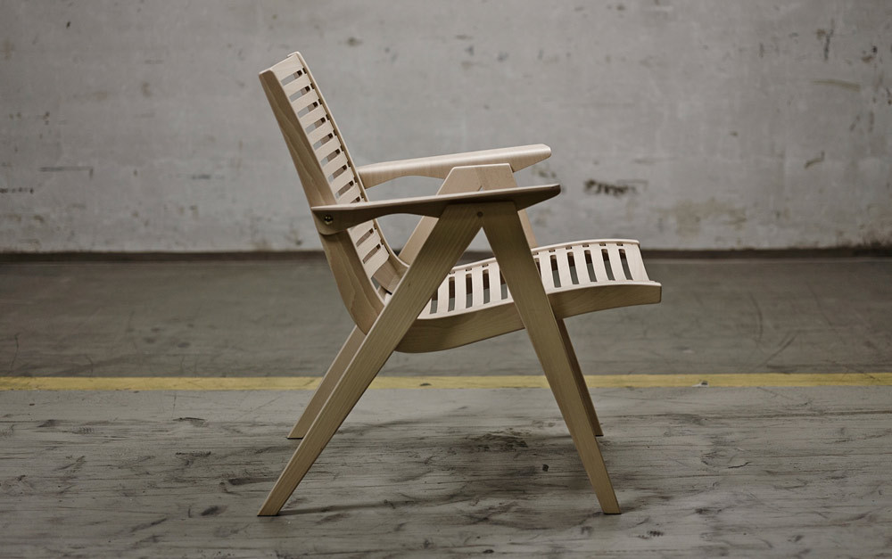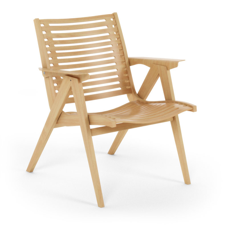 Naslonjač REX 120 je oblikoval Niko Kralj, narejen je iz bukovega lesa in je na voljo je v treh različnih barvah črni, beli in naravni. Po naročilu je možno naročiti tudi varianto naslonjača REX 120 v lesu teak ali lešniku.