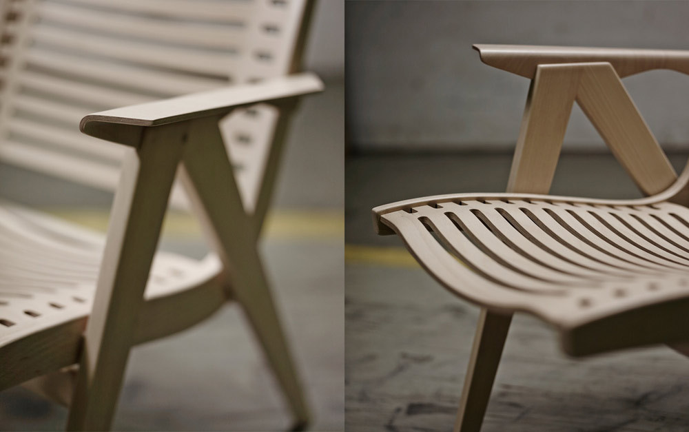 Material: bukov les in prostorsko ukrivljena bukova vezana plošča
