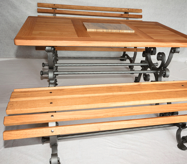 Ročno kovana klop s hrastovimi letvami 150×49 cm je ročno kovano klop brez naslona, blagovne znamke Private Joy Space. Krasijo jo hrastove letve v dimenziji sedalnega dela 150x49 cm. S svojimi zaobljenimi linijami in grafitno sivim barvnim tonom ročno kovanega ogrodja ter lesenimi letvami, se lepo poda k mizi kvadratne oblike. Ta kos pohištva je zaradi svoje proti-korozijske zaščite ogrodja in oljnega premaza hrastovih sedalnih delov, primeren ne le za notranjo uporabo, temveč lepo popestri tudi vrtne ute, terase, letne kuhinje ter intimne kotičke vašega vrta. Zaradi pravokotne oblike sedalne površine je klop primerna za postavitev v manjše kotičke, saj jo lahko prislonimo k zidu in s tem pridobimo še kako dragocen prostor.