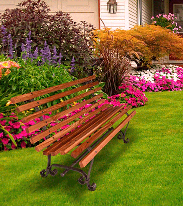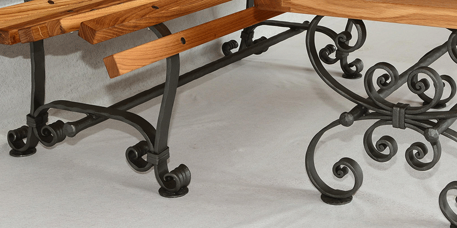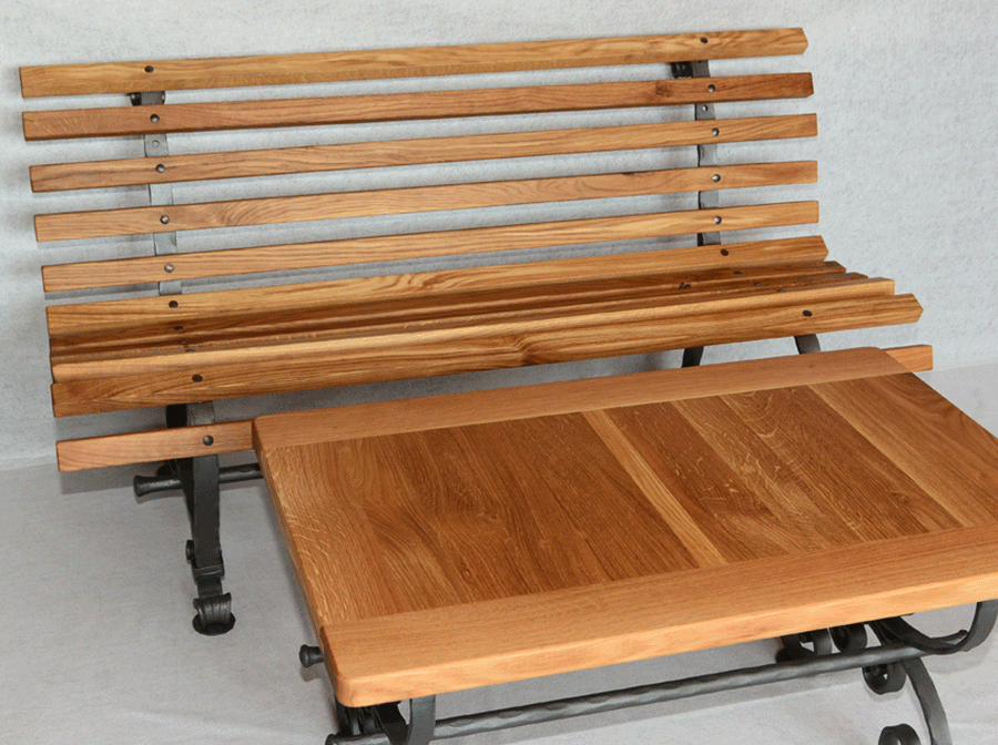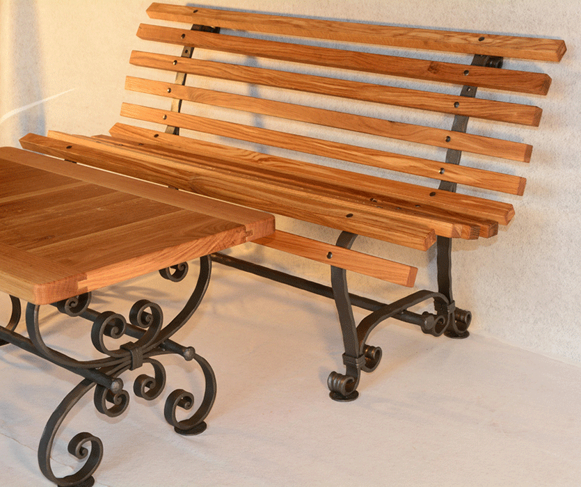 Ročno kovana klop z naslonom iz hrastovih letev 150×69 cm je ročno kovana klop z naslonom, blagovne znamke Private Joy Space. S svojimi mehkimi linijami lepo dopolnjuje najmirnejše kotičke vaše terase, vrta ali parka. S svojo ergonomsko oblikovanostjo zagotavlja popolno udobje. Unikatno ročno kovano in proti-korozijsko obdelano ter v grafitno sivih toni barvano ogrodje, izpopolnjujejo oljno zaščitene hrastove letvice. Njena namembnost omogoča samostojno postavitev, zaradi skladnih kovanih linij in lesenih delov pa se lepo poda tudi k masivni ročno kovani hrastovi mizi ali klubski mizici.