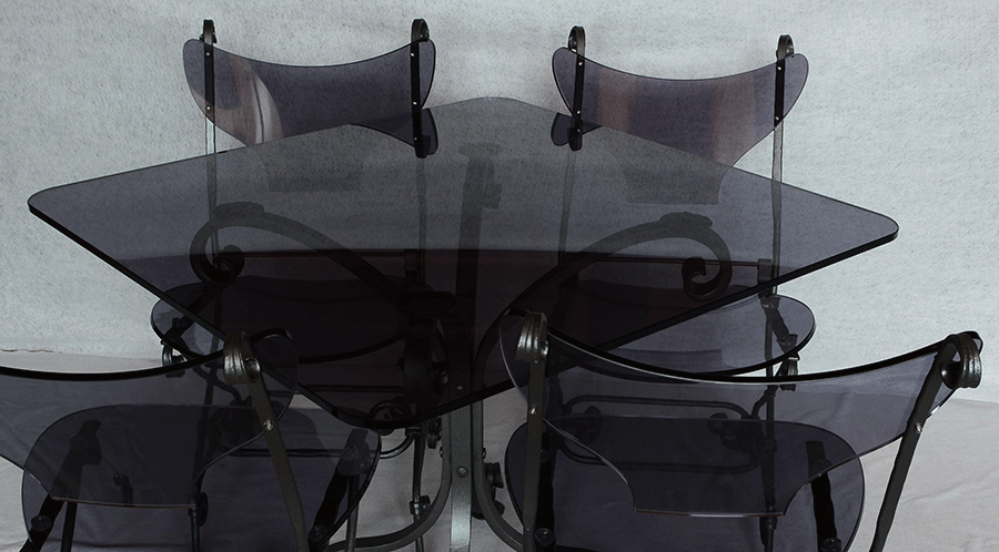 Ročno kovana kvadratna miza s steklom 90x90cm se s svojimi enostavnimi linijami lepo poda stilu opremljenosti vašega prostora, pa naj gre za trendovski ali starinski stil. Ročno kovano in vroče cinkano ogrodje mize v grafitno sivem tonu krasi steklena plošča v usklajenih barvah. Svojevrstne nezapletene linije ogrodja, steklene plošče ter centralna postavitev podnožja mize so prednosti, ki ta izdelek diferencirajo od drugih, saj omogočajo enostavnejšo uporabo tako v domačem, kot tudi v okolju gostinske postrežbe. Poleg vsega omenjenega je kovani del zaščiten proti rjavenju in tako mizo lahko brez skrbi pustite na prostem preko celega leta.