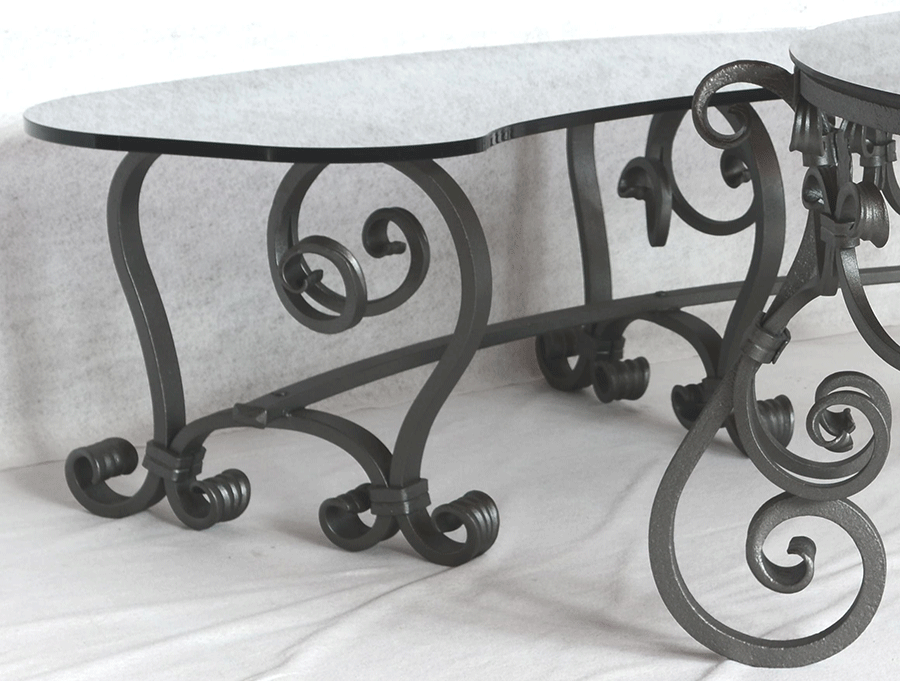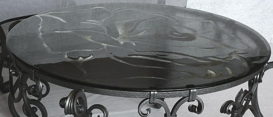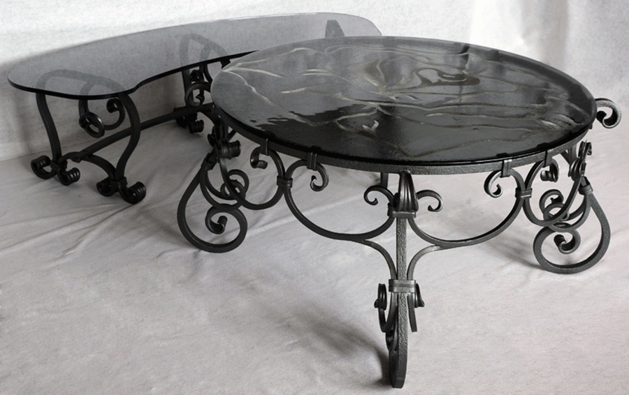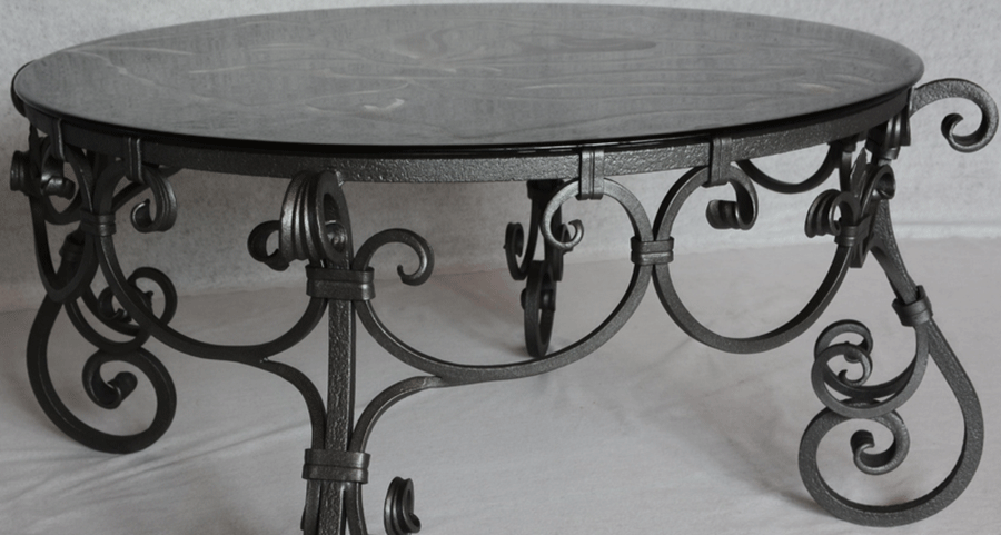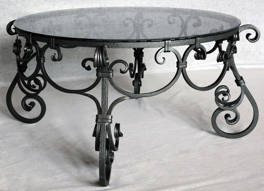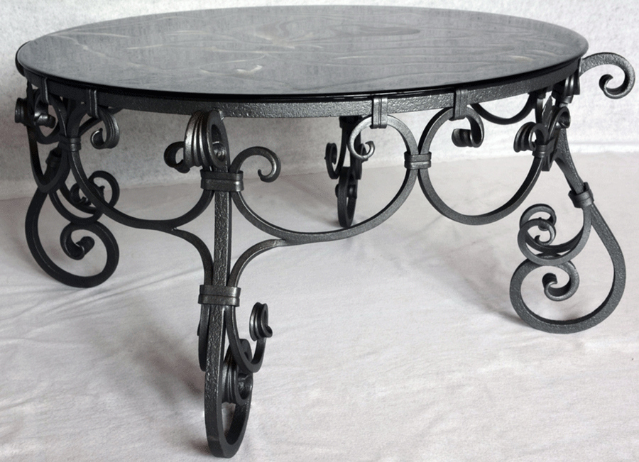 Ročno kovana okrogla klubska miza s steklom ø 98cm je romantično elegantna, unikatno ročno kovana klubska mizica okrogle oblike blagovne znamke Private Joy Space. Izvrstno dopolnjuje vsak dnevni prostor. Čarobnost linij izpopolnjuje steklo krožne oblike. Proti-korozijska zaščita in grafitno siv barvni premaz ogrodja ter po želji spodnja stran stekla peščene oblike, zagotavljata neobčutljivost na umazanijo ter tako minimalno vzdrževanje. Ta uglajen kos pohištva lepo popestri družinske prostore, salone hotelov in mirne kotičke restavracij, izvrstno pa se poda tudi letnim dnevnam in vrtnim pogostitvam.