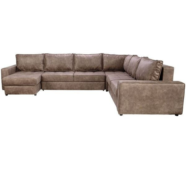 Sedežna garnitura KEN je moderna sedežna garnitura v obliki črke U in z univerzalno postavitvijo, iz visokokakovostne tkanine v svetlo rjavi ali temno rjavi barvi, ki bo dolgo časa ostala lepo ohranjena in je prijetna za sedenje v vseh letnih časih. Sedežna nudi ogromno prostora za sproščanje vas in vaših najbližjih.