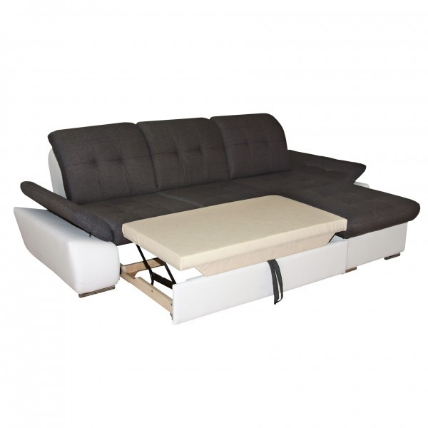 Sedežna garnitura LADY L je oblazinjena na voljo v dveh barvnih kombinacijah in dveh postavitvah - levi in desni. Sedežna garnitura je oblazinjena v kombinaciji umetnega usnja in tkanine in bo odlično mesto za druženja ali počitek. Dodatno udobnost vam bodo nudile vzmeti in rokonasloni, ki so nastavljivi po višini. Sedežno garnituro lahko z enostavno potezo spremenite v dodatno ležišče za goste.