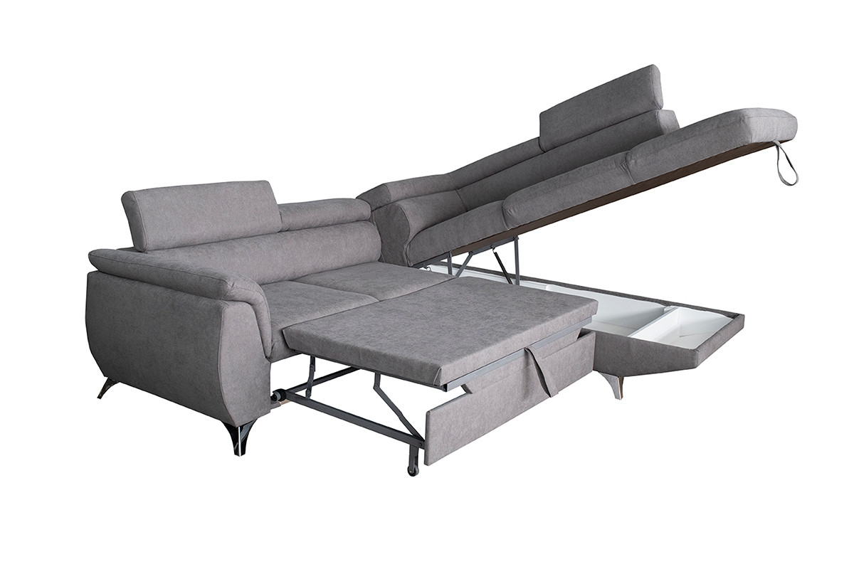 Privoščite svoji dnevni sobi moderno sedežno garnituro LENTIK, ki se poleg dobrega videza ponaša tudi s funkcionalnostjo, saj vam nudi obilo prostora za sedenje, ima posteljno funkcijo ter priročni predal, ki vam nudi dragoceni dodatni prostor za shranjevanje in v katerega lahko pospravite vzglavnike in posteljnino in tako ohranite pospravljeno dnevno sobo. Nahaja se pod krajšim delom garniture. Naslonjala za glavo lahko poljubno dvigate ali spuščate. Sedežna ima vzmetenje iz elastičnih trakov.