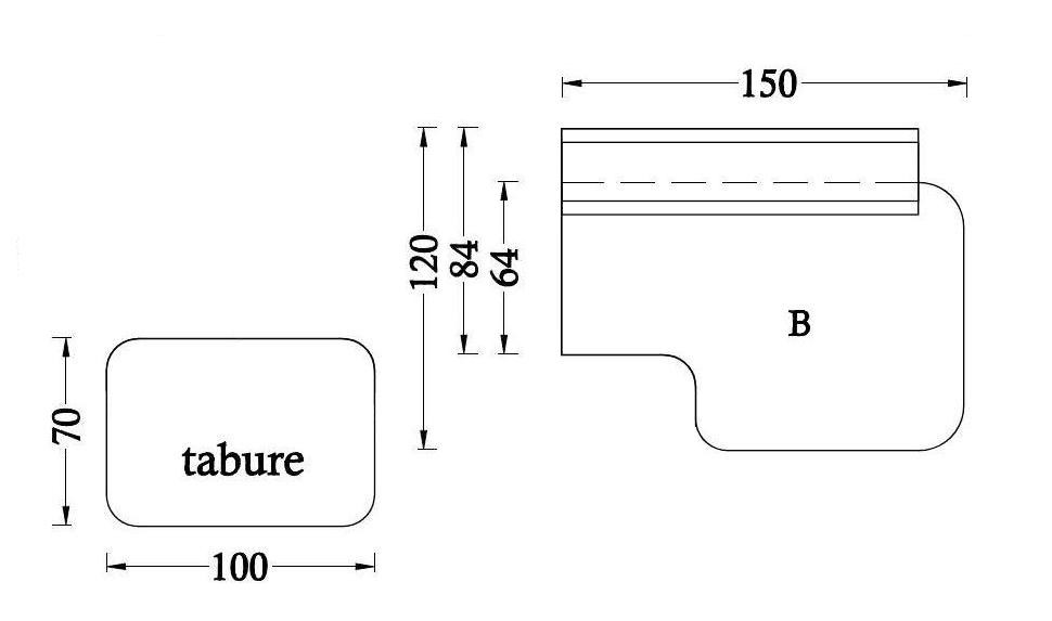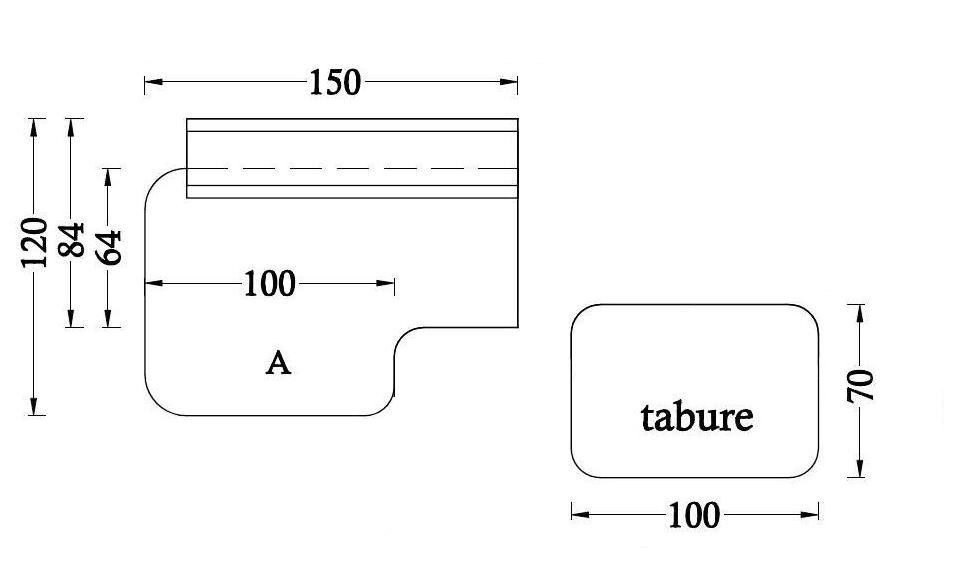 Sestav: 1 x osnovni element z velikim naslonom: 1 x 150/300 x 120 x 72 cm, Tabure: 100 x 70 x 40 cm