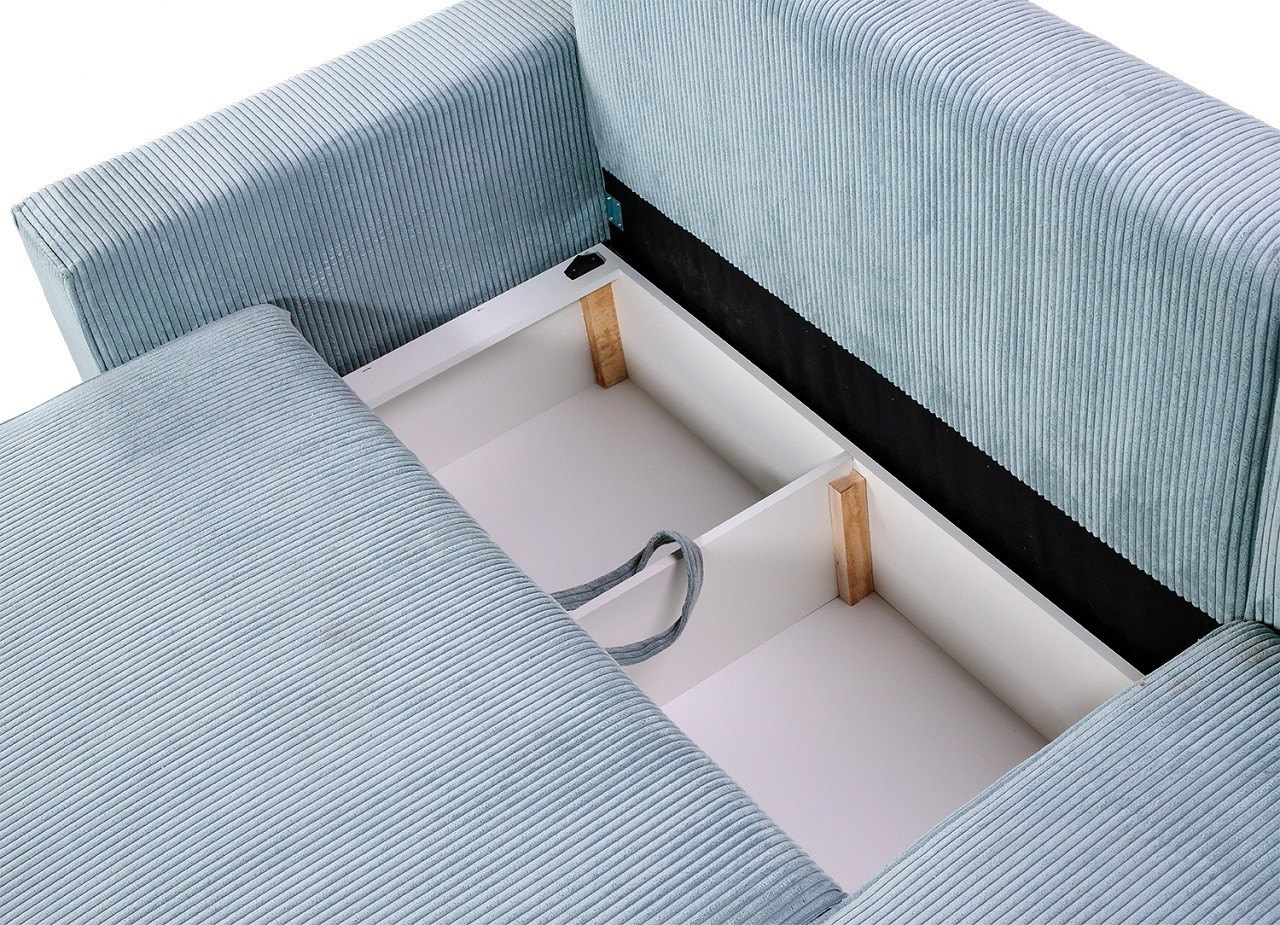 Kavč ima valovite vzmeti in je oblazinjen v debelo plast pene, ki omogoča popolno udobje pri počitku. Zaradi visokokvalitetne pene in vzmeti, kakovost in dolgoročnost so lastnosti, ki jih lahko pričakujete od tiste garniture. En izmed praktičnih dodatkov je tudi vgrajeno dodatno ležišče, ki omogoča še dodaten prostor za kvalitetno porabljen čas z najbližjimi. Kavč se tudi raztegne v posteljo, a pod sediščem se nahaja in shranjevalni boks za vse kar bi lahko rabili.