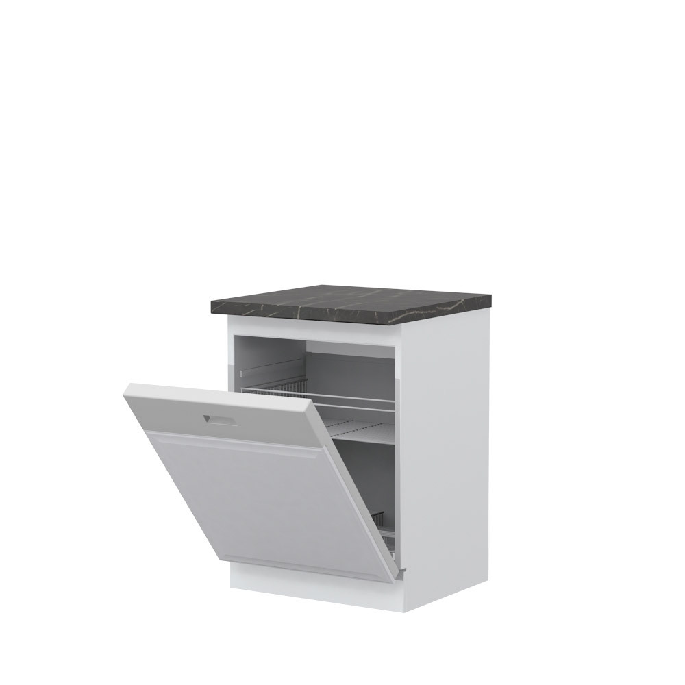 Set vključuje fronto, cokel, pult in ročko za vgradni pomivalni stroj, ki ima vidni panel za upravljanje. Na voljo je v svetli barvi sive perle, ki se enostavno kombinira s katerokoli drugo barvo, zato se lepo poda v vsak dom. Ima funkcijo tihega zapiranja, ki pripomore k lažji vsakodnevni uporabi. Stranice niso vključene!