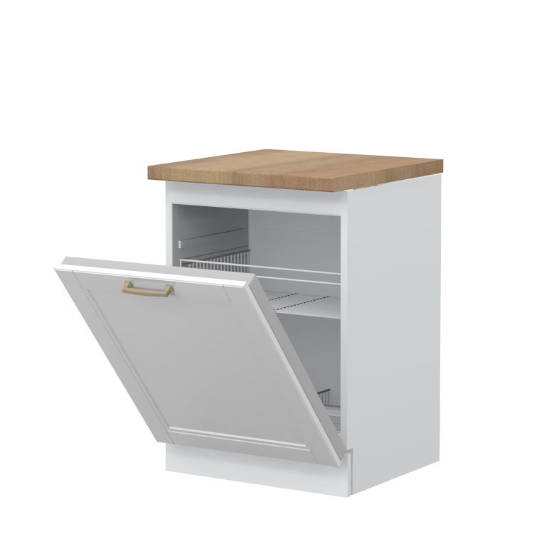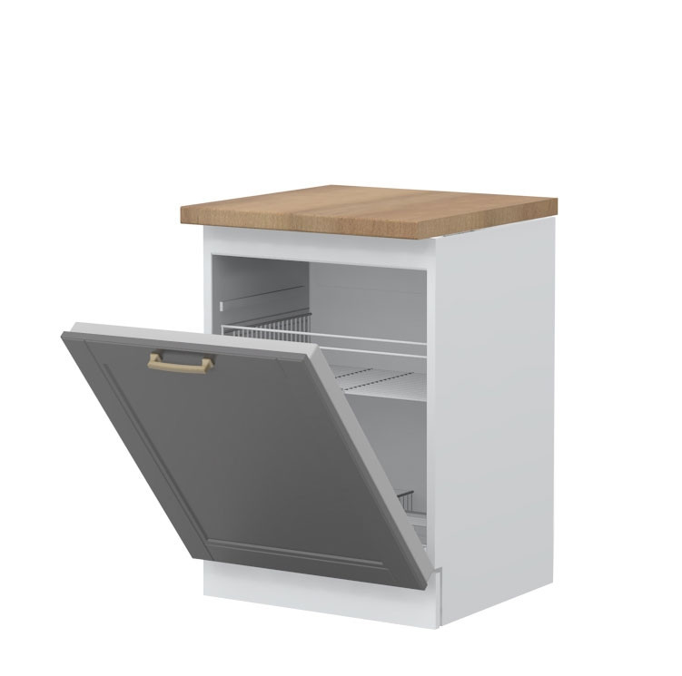 Set vključuje fronto, cokel, pult in ročko za vgradni pomivalni stroj, ki nima vidnega panela za upravljanje. Na voljo je v elegantni beli in grafit barvi in v klasičnem dizajnu, ki je vedno moderen in izgleda odlično v vsakem domu. Ima funkcijo tihega zapiranja, ki pripomore k lažji vsakodnevni uporabi. Stranice niso vključene!