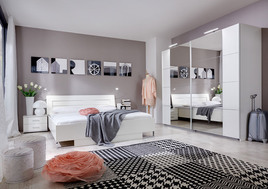 Spalnica DAVOS je spalnica modernega dizajna, narejena iz oplemenitene iverne plošče v beli barvi.